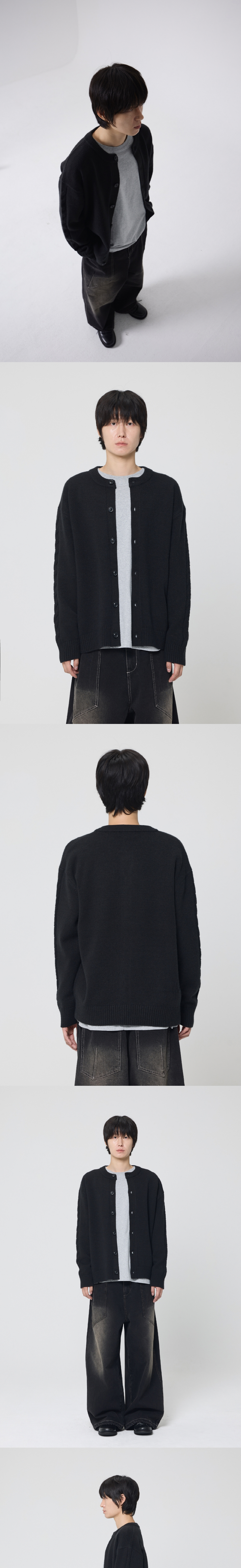 - 보온성이 뛰어난 아크릴 혼방 원사를 사용하였습니다. - 전체 중량을 723g으로 편직하여 두께감이 적당하며 겨울에는 이너로 활용 가능합니다. - 라운드 형태의 넥으로 디자인하여 다양한 코디가 가능합니다. - 소매에는 꽈배기 편직 작업을 하여 포인트를 주었습니다. Shell : Acrylic 45% Nylon 30% Polyester 25% 오버핏 1(S) : 총장 66.5, 어깨단면 53.5, 가슴단면 60, 소매길이 58.5, 밑단단면 48 2(M) : 총장 68.5, 어깨단면 55.5, 가슴단면 62.5, 소매길이 60, 밑단단면 50.5 3(L) : 총장 70.5, 어깨단면 57.5, 가슴단면 65, 소매길이 61.5, 밑단단면 53 * 95~100사이즈를 입으시는분은 1사이즈 * 100~105사이즈를 입으시는분은 2사이즈 * 105~110사이즈를 입으시는분은 3사이즈 MODEL Model : 183cm, 상의 3사이즈 하의 2사이즈 착용