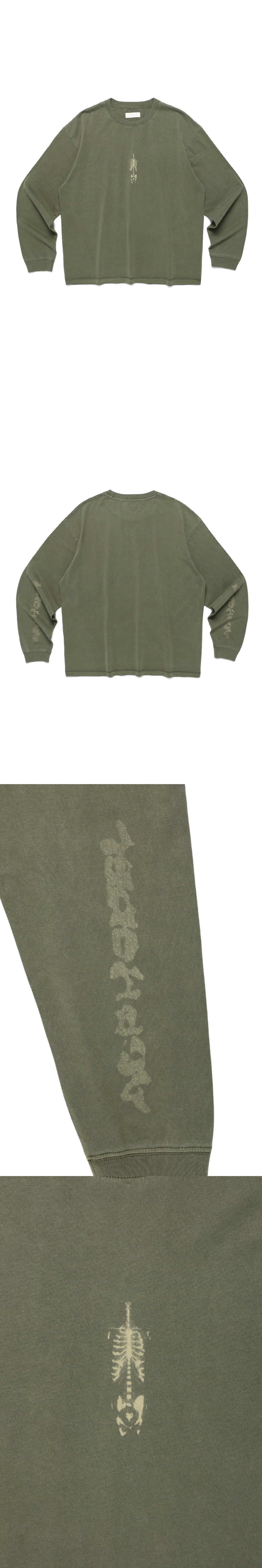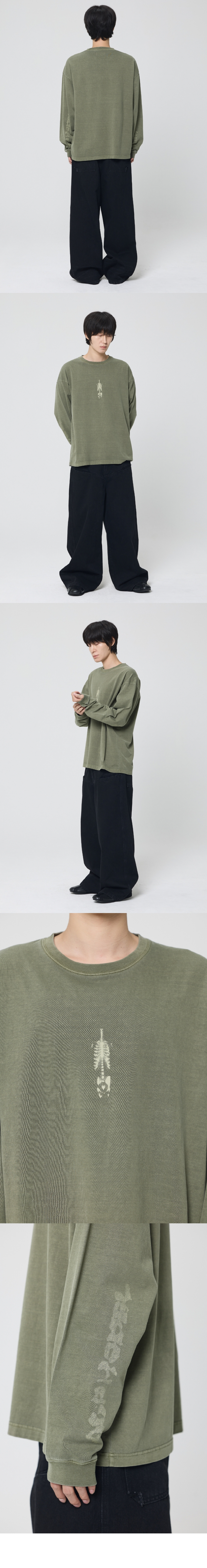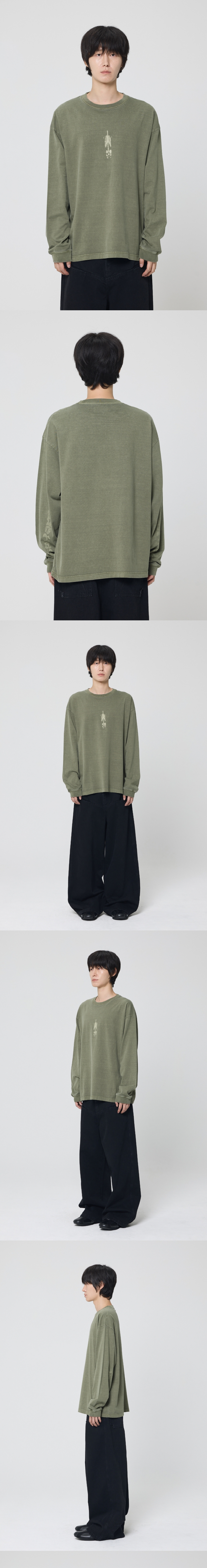 모델이 착용한 촬영용 제품은 샘플 제품으로 밑단 수소 봉제법이 적용 되지 않았습니다. 메인 생산 제품은 수소 봉제가 적용되어 출고되오니 구매 시 참고 부탁드립니다. SQM/210g 적당한 두께감의 20수 싱글 원단을 사용하였습니다. 앞판에는 뼈모양 형태의 그래픽, 소매에는 아스포델로스 형상 그래픽을 라바 기법을 통해 자연스럽게 표현하였습니다. 밑단에는 일반 티셔츠의 봉제법과 다른 수소봉제를 기법을 적용하여 포인트를 추가하였습니다. 피그먼트 다잉을 통해 빈티지한 색감을 표현하였습니다. Shell : Cotton 100% 세미 오버핏 1(S) : 총장 67.5, 어깨단면 55.5, 가슴단면 57.5, 소매길이 61.5, 밑단단면 55.5 2(M) : 총장 69.5, 어깨단면 57.5, 가슴단면 60, 소매길이 62.5, 밑단단면 58 3(L) : 총장 71.5, 어깨단면 59.5, 가슴단면 62.5, 소매길이 63.5, 밑단단면 60.5 MODEL Model : 183cm, 상의 3사이즈 하의 2사이즈 착용