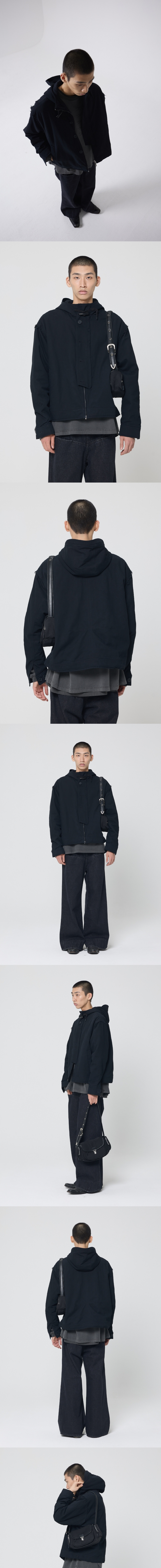 토글 단추 디테일의 크롭 후드 봄버 - 안감 5온즈 퀼팅 충전재 - 토글 단추 디테일 - 밑단 사이드 안쪽 스트링 작업으로 핏조절 가능 - 뒷판 하단 시그니쳐 다트 디테일 작업 - 어깨, 앞단작 데끼 처리 - 소매 입체 절개 작업 Shell : Cotton 100% 크롭 오버핏 1(S) : 총장 61.5, 어깨단면 56.5, 가슴단면 68, 소매길이 60, 밑단단면 65 2(M) : 총장 63.5, 어깨단면 58.5, 가슴단면 70.5, 소매길이 61.5, 밑단단면 67.5 3(L) : 총장 65.5, 어깨단면 60.5, 가슴단면 73, 소매길이 63, 밑단단면 70 * 95~100사이즈를 입으시는분은 1사이즈 * 100~105사이즈를 입으시는분은 2사이즈 * 105~110사이즈를 입으시는분은 3사이즈 MODEL Model : 183cm, 상의 3사이즈 하의 2사이즈 착용