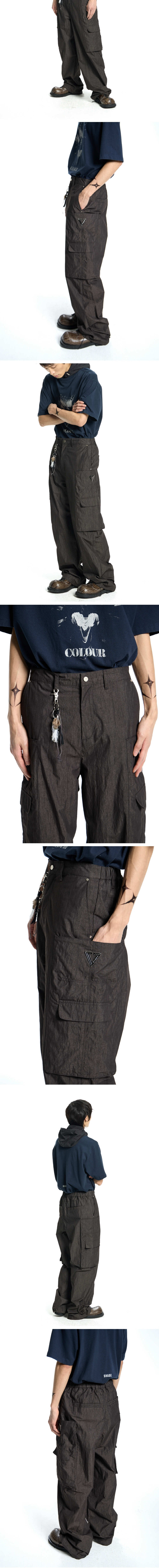 시원한 슬랍진 빈티지한 컬러감과 유틸리티 감성이 돋보이는 소재의 카고 팬츠입니다. 사이드 포켓에 본바트 시그니처 다트 디테일과 금속로고로 세련된 느낌을 더했습니다. 사이드 포켓 위에 후다 포켓 디테일로 편의성과 디자인을 동시에 연출해주었습니다. 팬츠 뒤쪽 허릿단에 밴드를 넣어 한층 편안한 착용감이 특징입니다. Shell: Cotton 60% Nylon 40% 와이드핏 1(46) : 총장 110, 허리단면 37.5, 허벅지단면 36, 밑위 38.5, 밑단단면 26.5 2(48) : 총장 112, 허리단면 40, 허벅지단면 37.4, 밑위 39.3, 밑단단면 27 3(50) : 총장 114, 허리단면 42.5, 허벅지단면 38.8, 밑위 40.1, 밑단단면 27.5