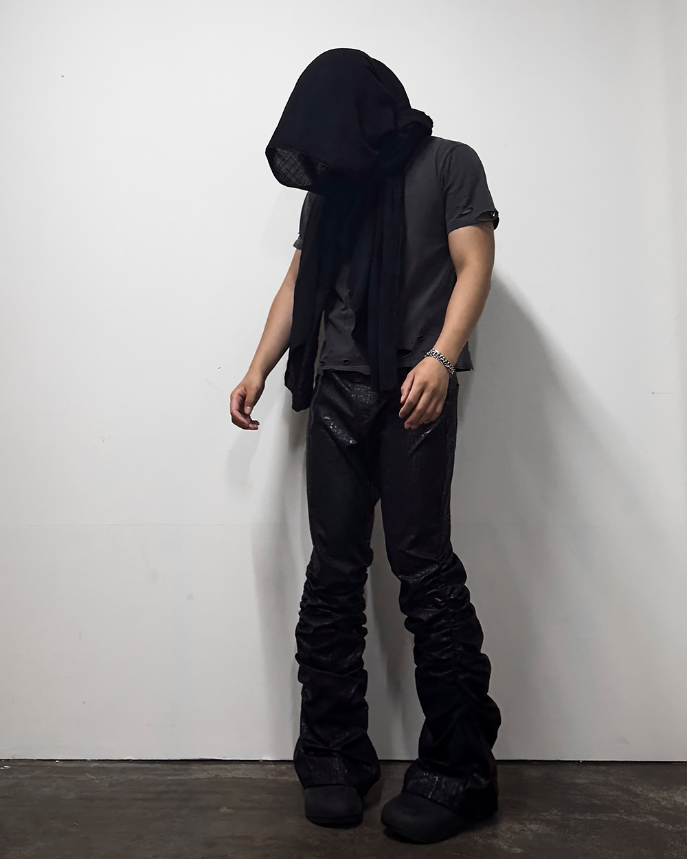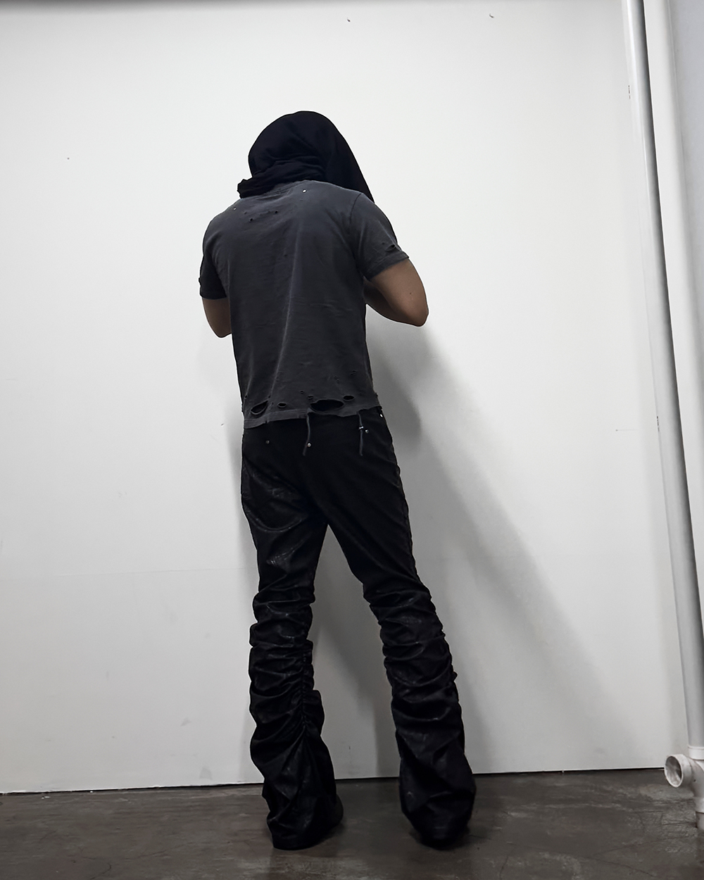 SHXDW 25SS ASHED DAMAGE T-SHIRT BLACK 쉐도우 애쉬드 데미지 티셔츠 블랙 DETAIL - FREE SIZE - CROP FIT - GARMENT DYEING - CUT OUT DAMAGE DETAIL