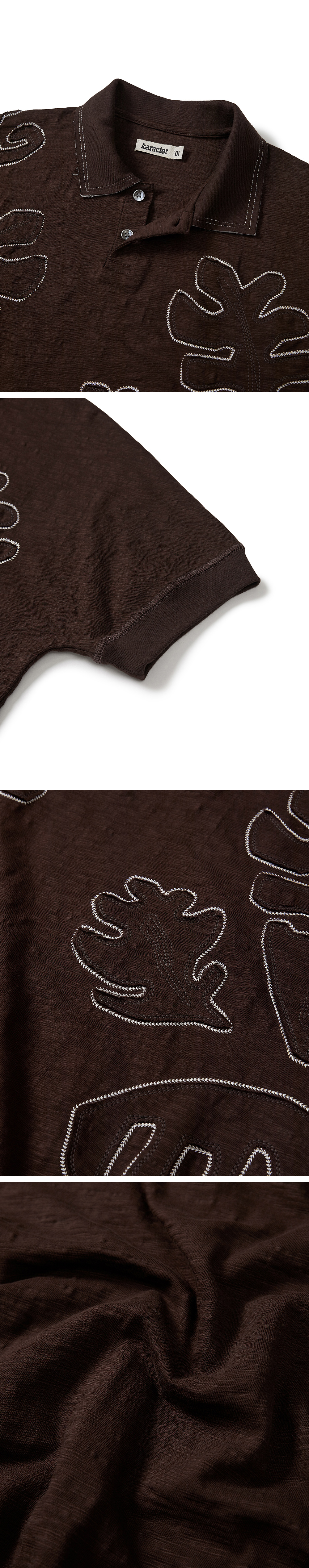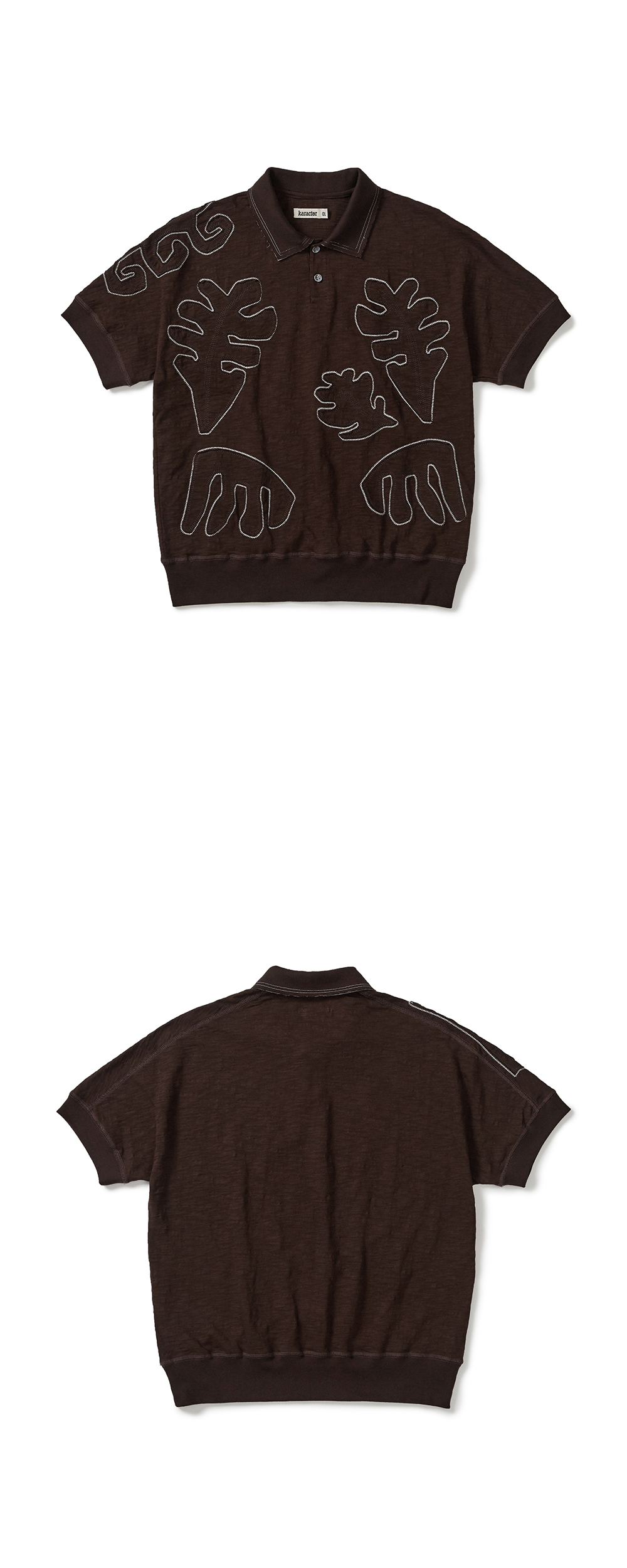 Product Info. - 바이오 가공을 거쳐 소프트한 스킨십과 빈티지한 슬러브 텍스처의 패브릭 - 편안한 착용감의 릴렉스드 핏 실루엣과 경쾌한 크롭 기장감의 폴로셔츠 - 바디 일체형 슬리브 변형 패턴으로 자연스럽게 떨어지는 숄더 라인 - 넥 칼라 러프한 컷 오프, 더블 스티치 디테일 - 프런트 전면 내추럴한 무드의 패치워크 자수 - 전면 버튼 여밈, 고급 천연 자개단추