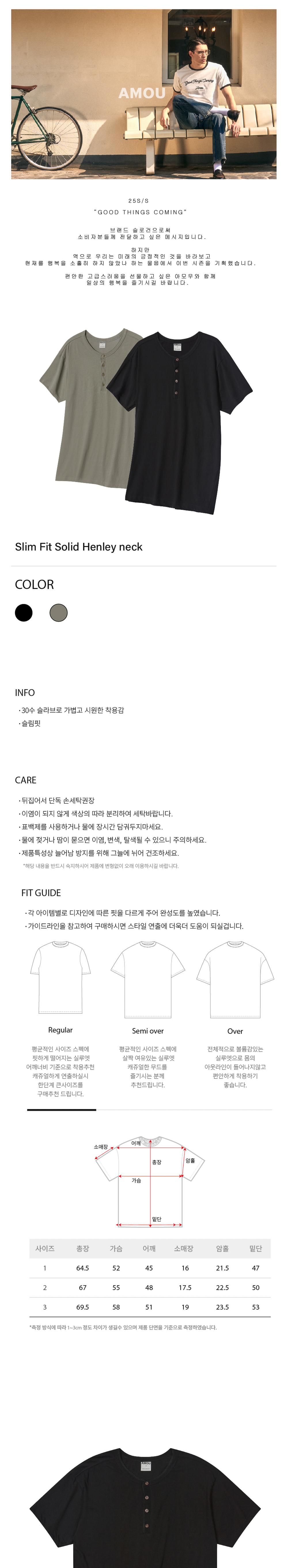아모우 슬림핏 솔리드 헨리넥 블랙
