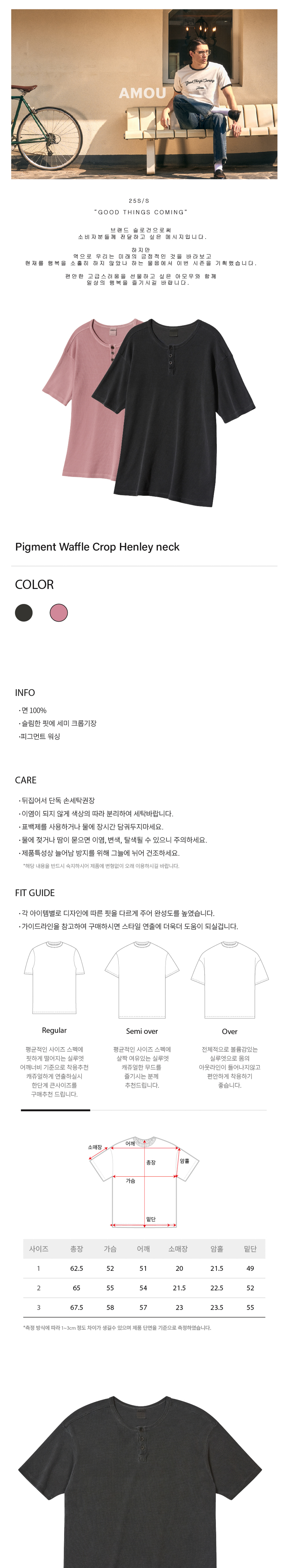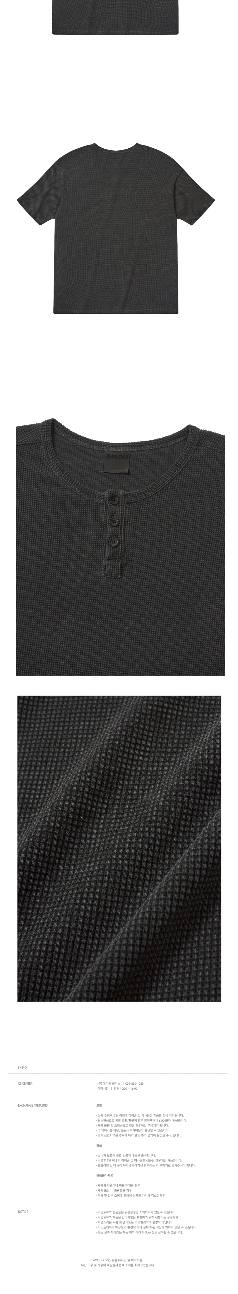 아모우 피그먼트 와플 크롭 헨리넥 차콜 그레이