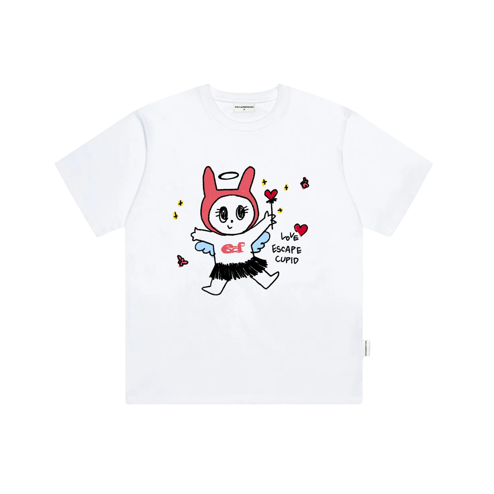 Escapefrom Love Cupid Print Oversized Fit Short Sleeve T-shirt White