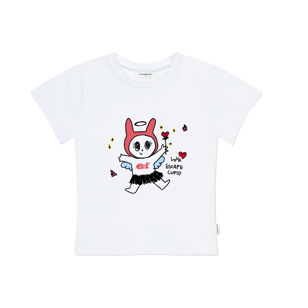Escapefrom Love Cupid Print Slim Fit Short Sleeve T-Shirt White
