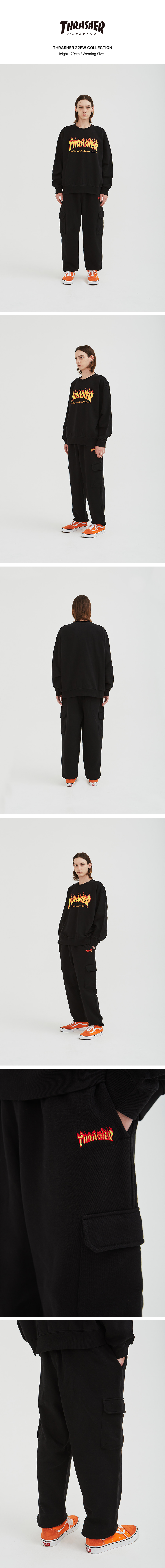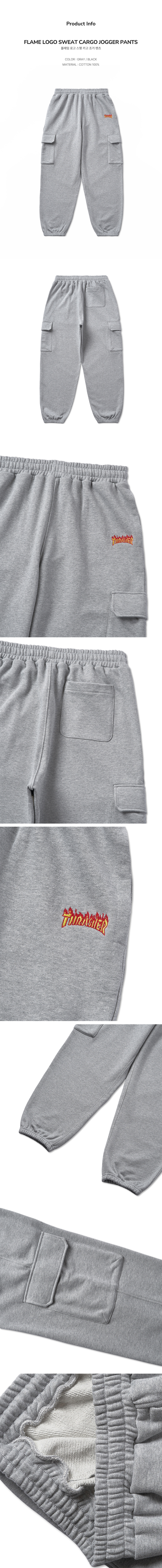 트레셔 플레임 로고 스웻 카고 조거 팬츠 그레이