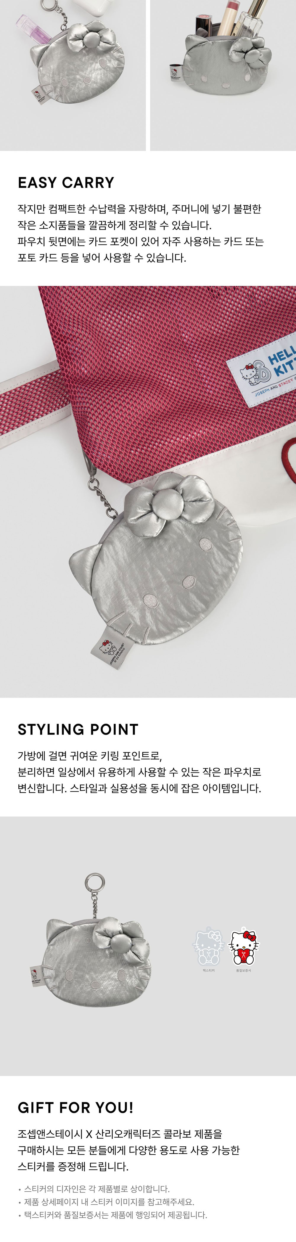 조셉앤스테이시 슬릭 미니 파우치 헬로키티 실버