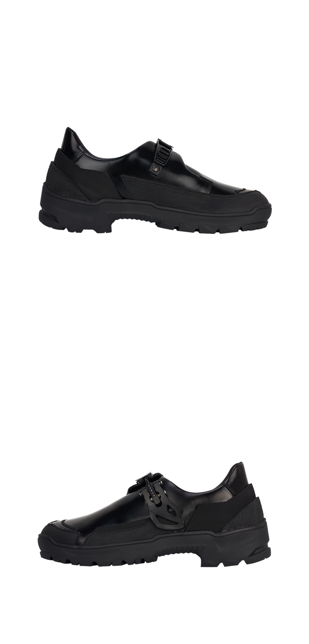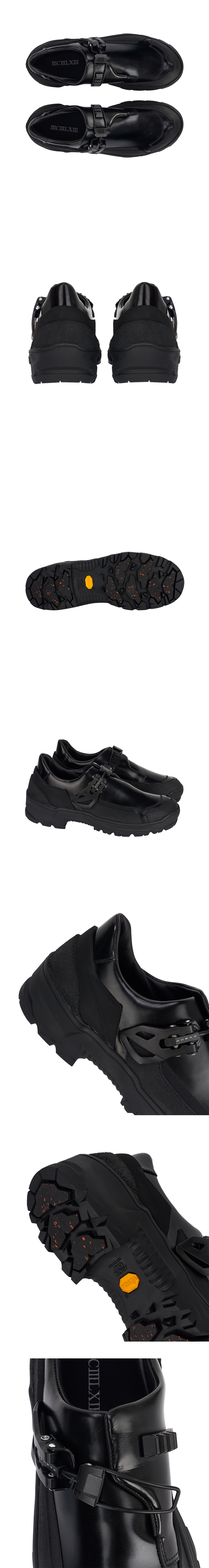 데몬 레인 블랙 컬러입니다. - 프론트 버클 디테일로 간편한 사이즈 조절 가능 (슈레이스 없는 구조) - Vibram 아웃솔을 적용해 우수한 미끄럼 방지 기능과 접지력 제공