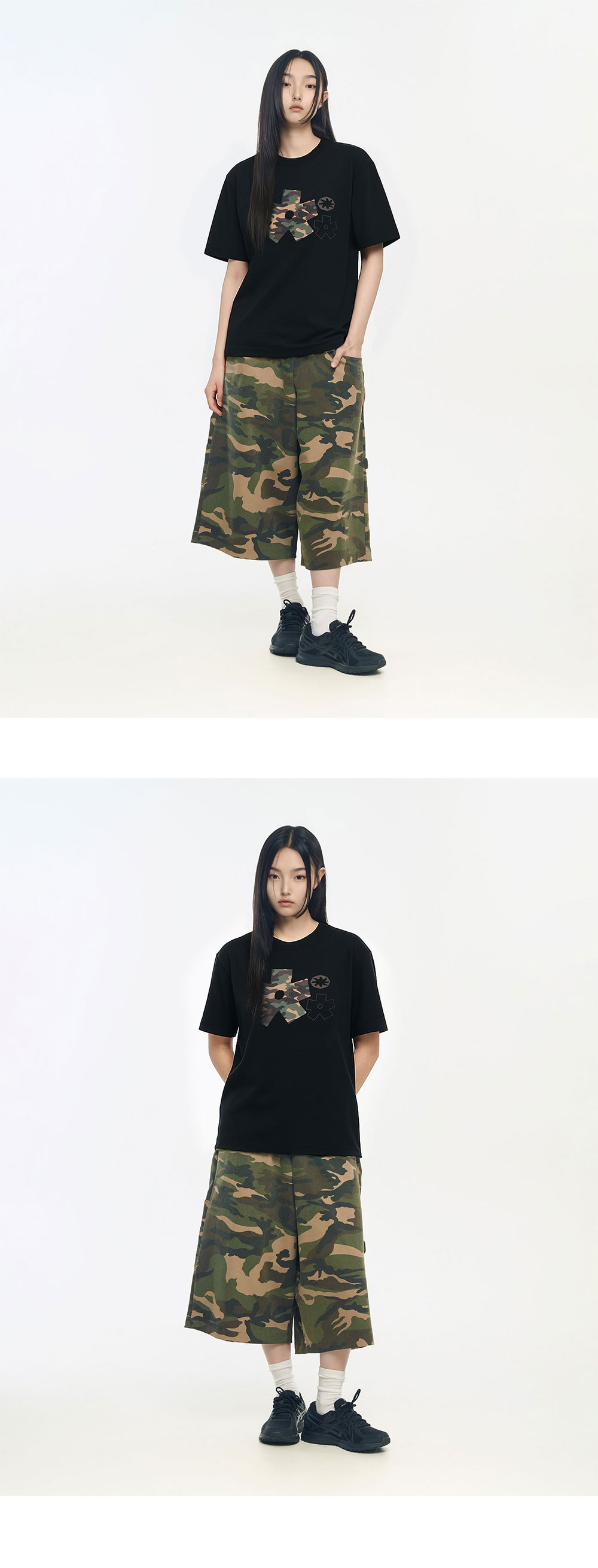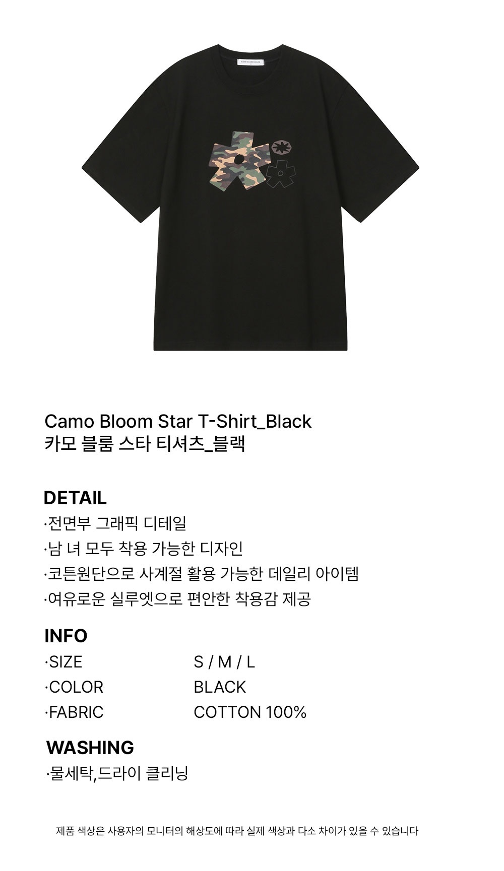 슬로우 레코드 하우스 카모블룸 스타 티셔츠 블랙