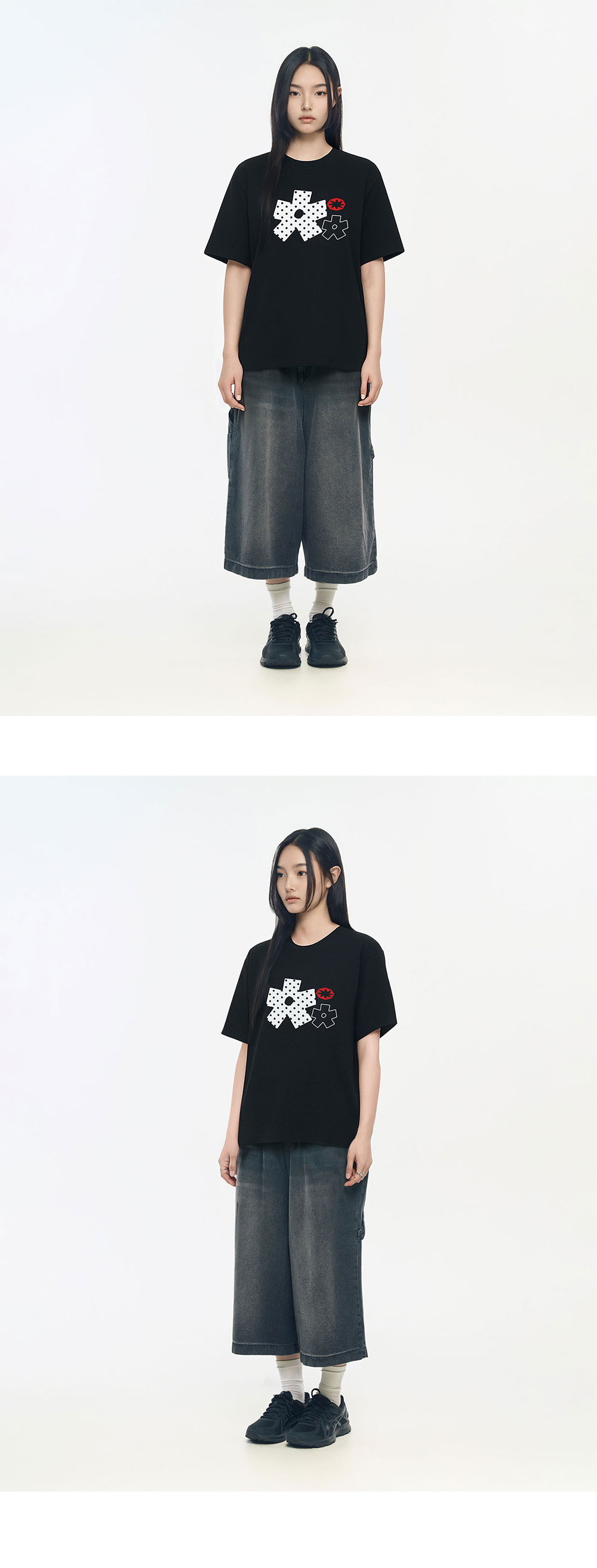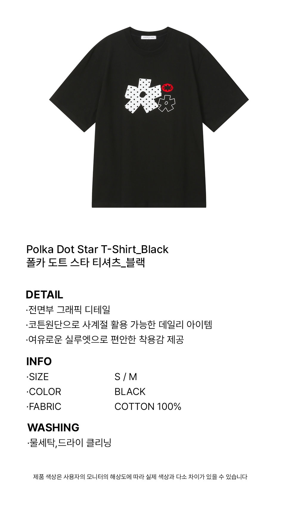 슬로우 레코드 하우스 폴카도트 스타 티셔츠 블랙