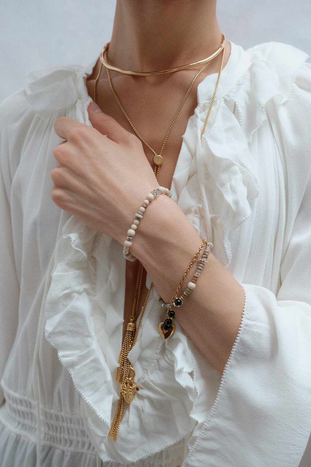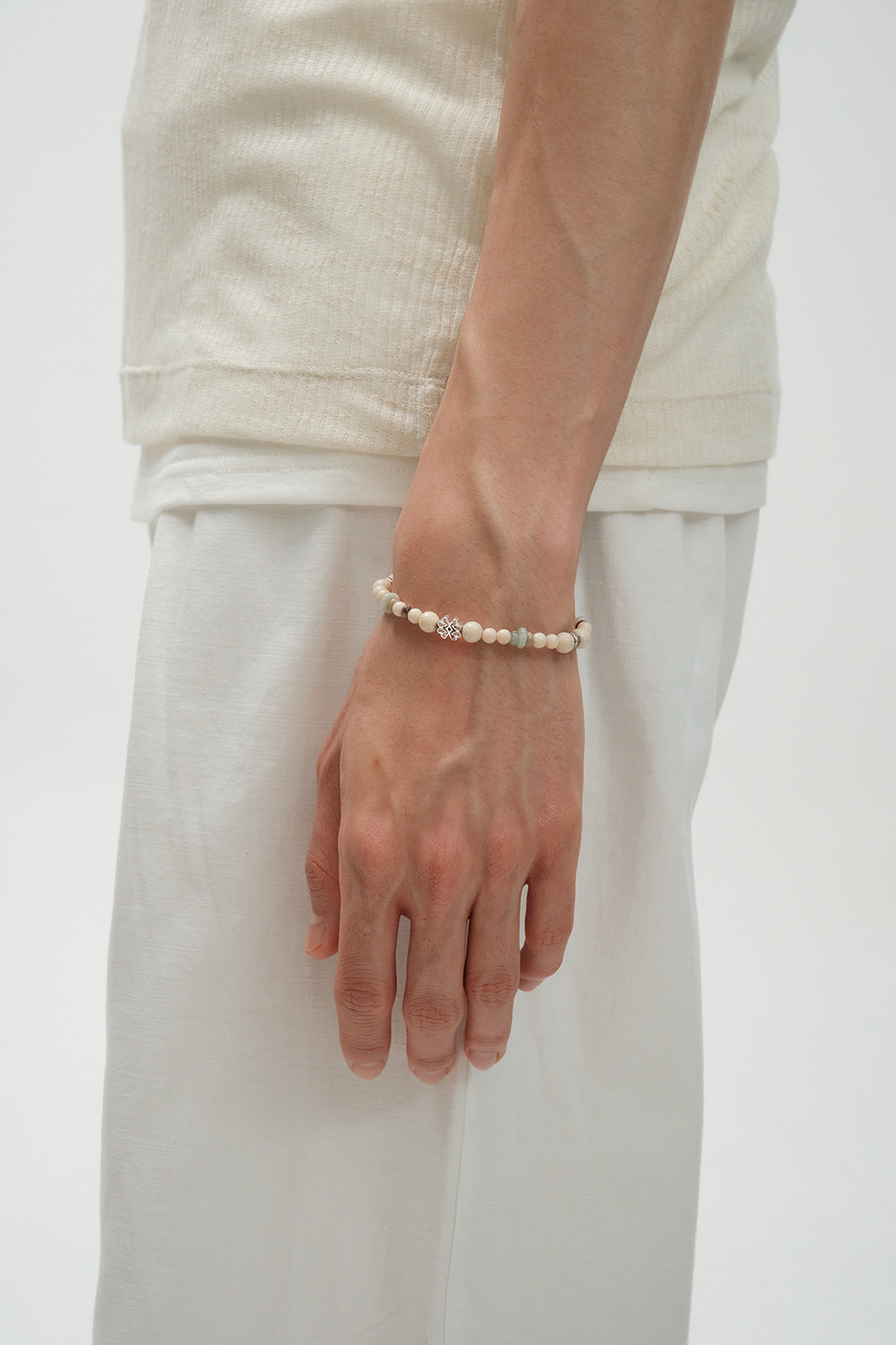 매트한 텍스처와 자연스러운 색감의 스톤이 돋보이는 트라이벌 무드 브레이슬릿. 티링제이만의 현대적이고 트렌디한 감성을 더해, 와일드하면서도 세련된 스타일을 완성합니다. *Handmade 주얼리로, 주문 후 제작 기간은 3일이 소요됩니다. (주말 / 공휴일 제외) *사용된 Karen silver 비즈는 수공예 실버로, 같은 디자인이라도 모두 미세한 차이가 있으며 입고 시점에 따라 디테일이 달라질 수 있습니다.