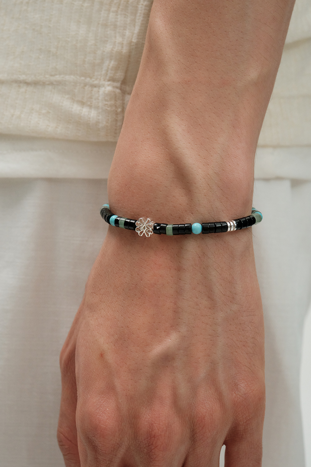 선명한 색감의 비즈와 빈티지한 실버참으로 하나의 코드를 이루는 비즈 브레이슬릿. 구조와 대비를 기반으로 한 절제된 디자인 위에 티링제이만의 모던함을 표현한 아이템. *Handmade 주얼리로, 주문 후 제작 기간은 3일이 소요됩니다. (주말 / 공휴일 제외) *사용된 Karen silver 비즈는 수공예 실버로, 같은 디자인이라도 모두 미세한 차이가 있으며 입고 시점에 따라 디테일이 달라질 수 있습니다.