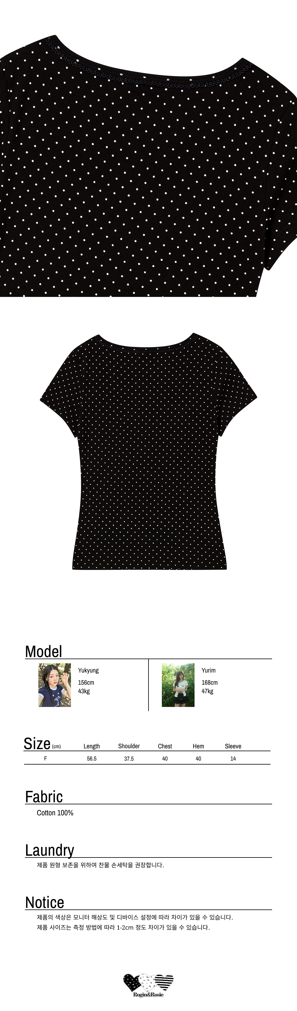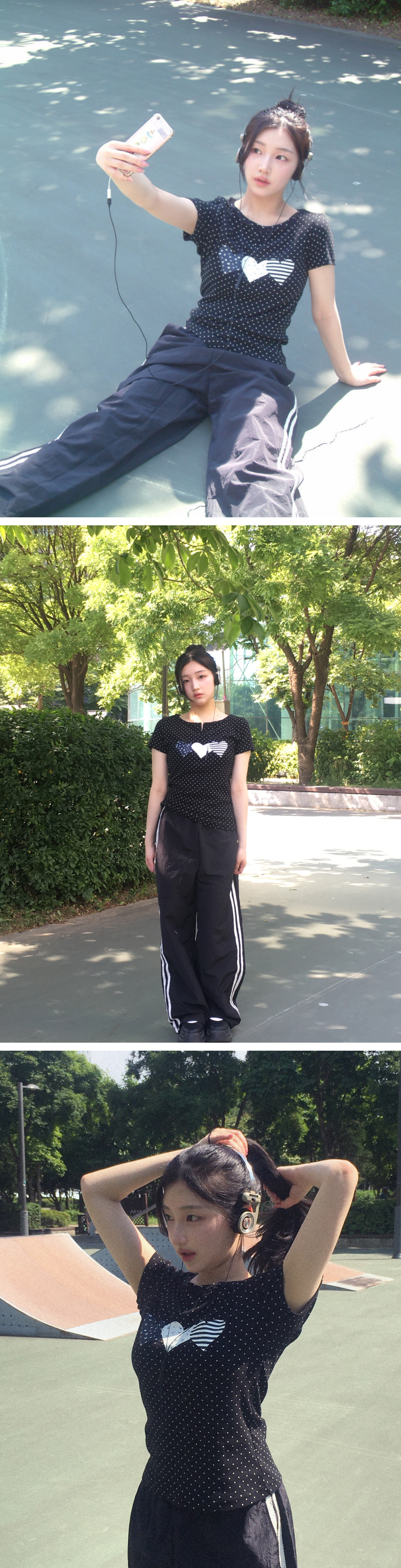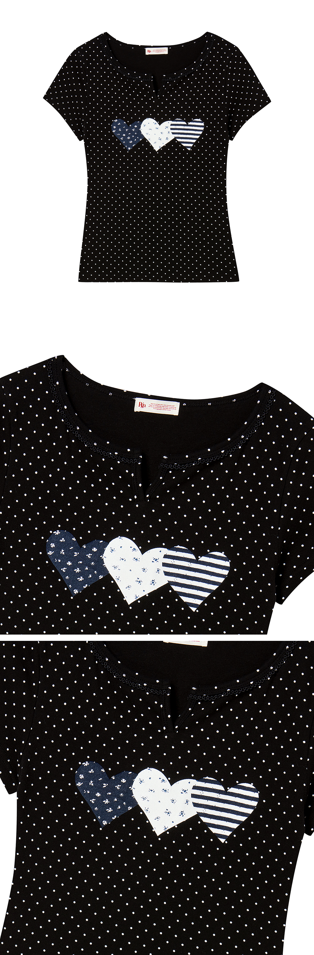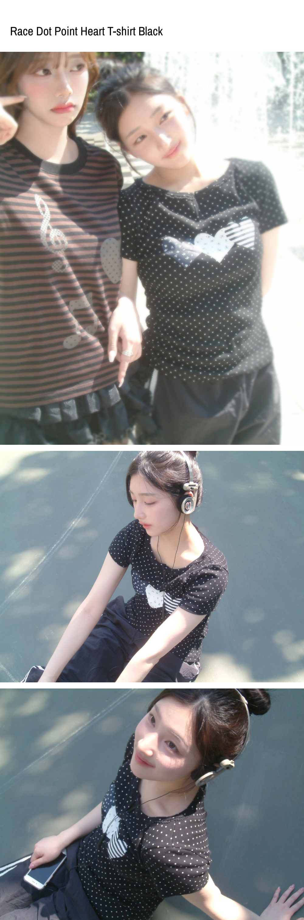 로긴 앤 로지 레이스 도트 포인트 하트 티셔츠 블랙