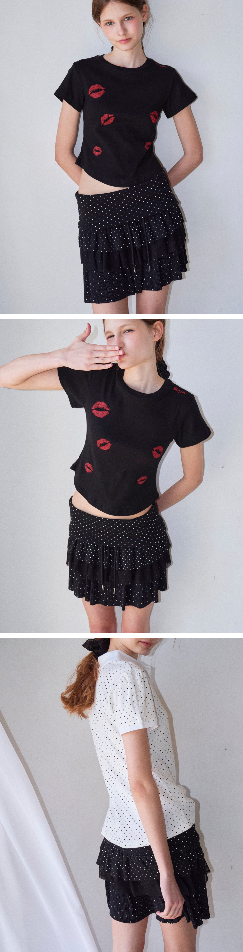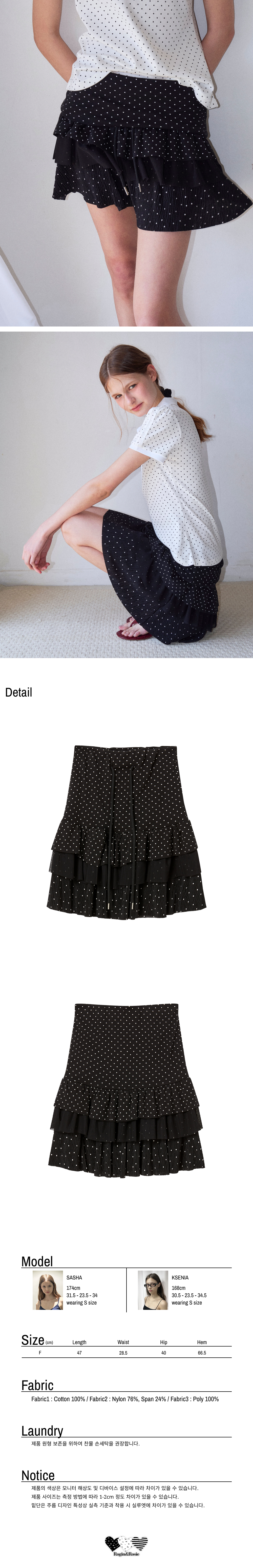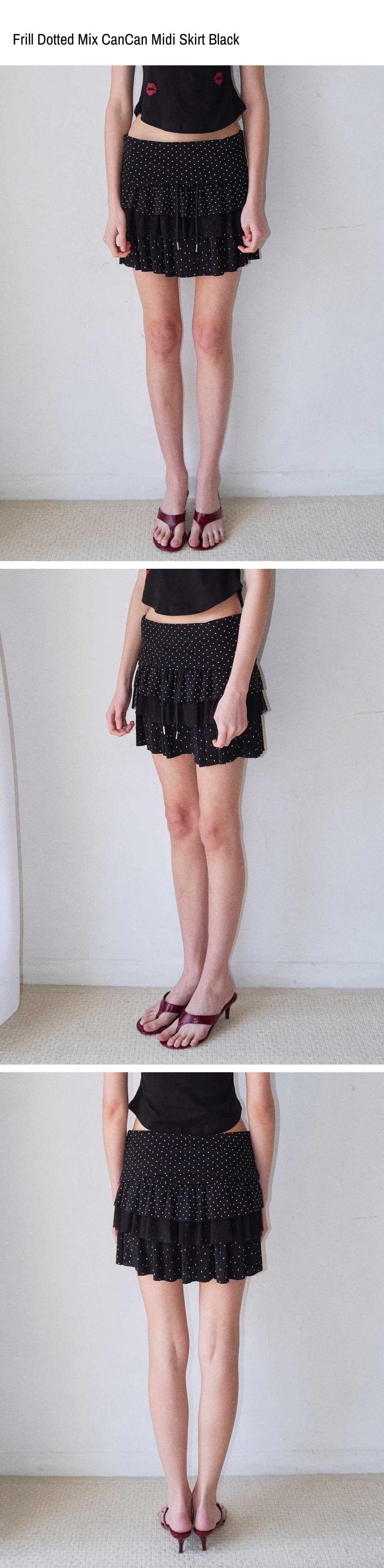 로긴 앤 로지 프릴 도트 믹스 캉캉 미디스커트 블랙