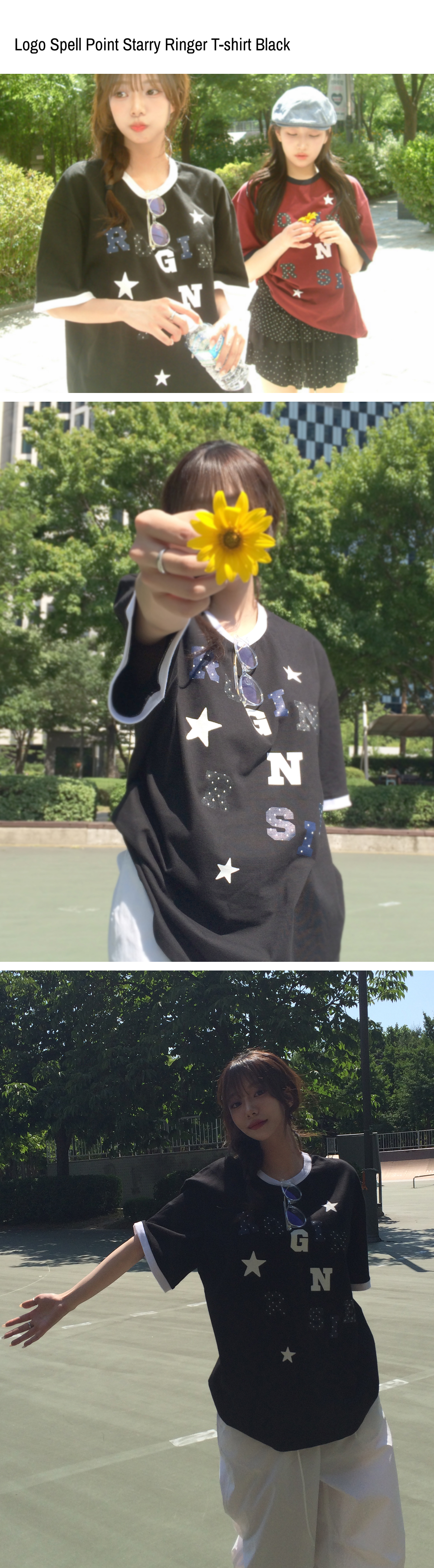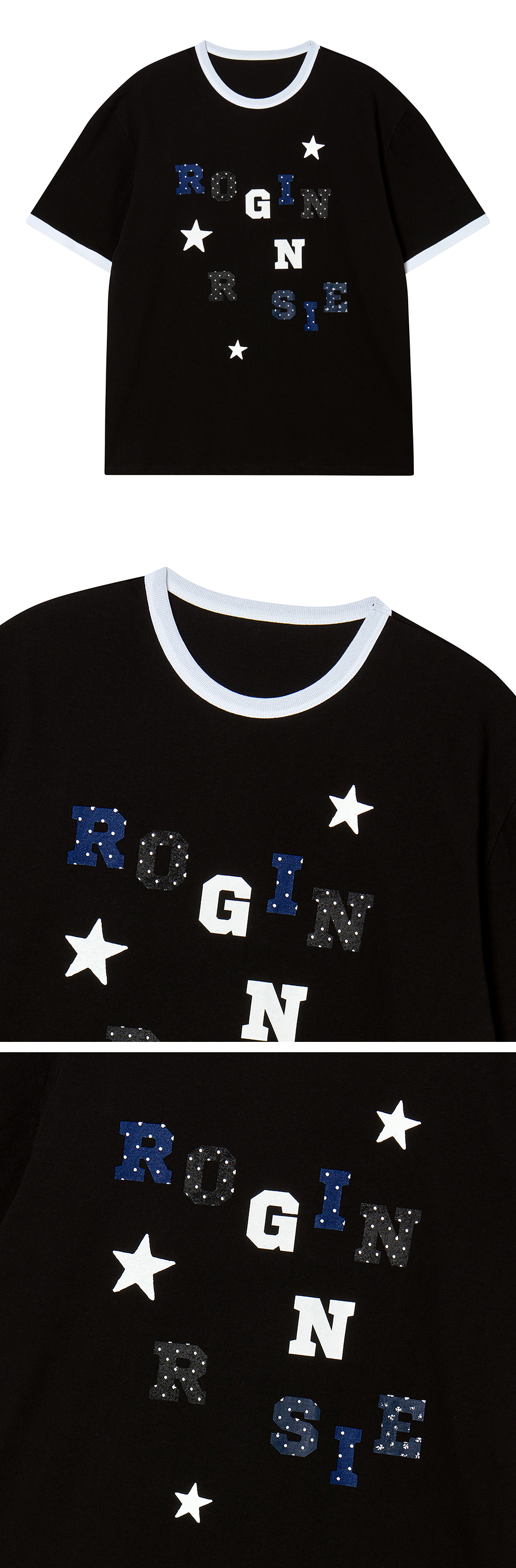 Rogin N Rosie Logo Spell Point Starry Ringer T-shirt Black