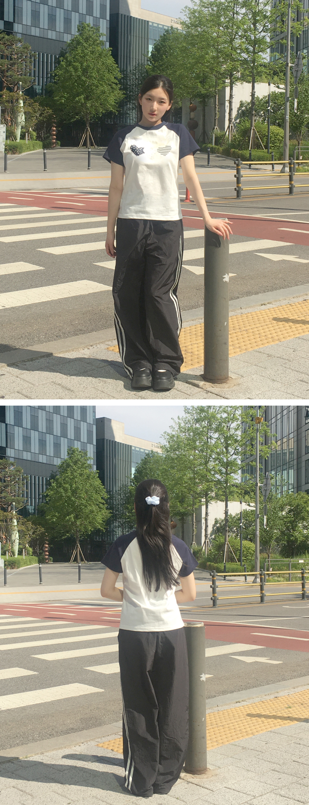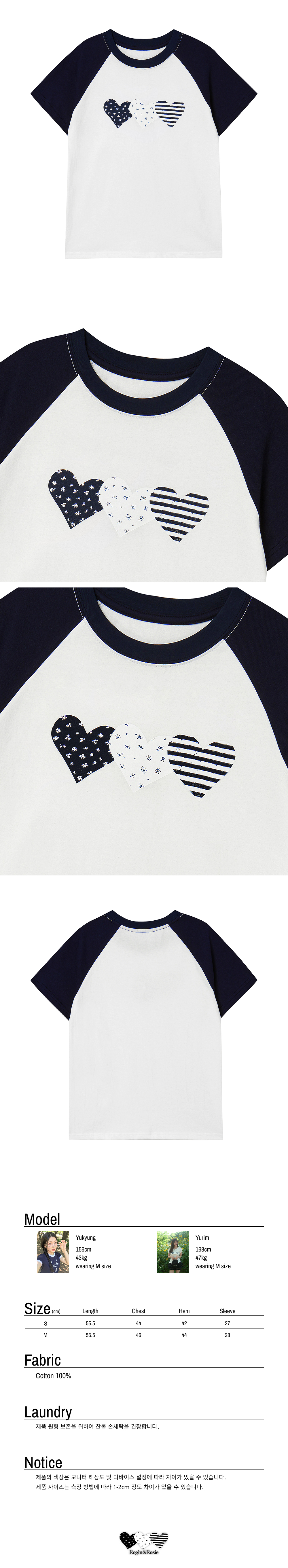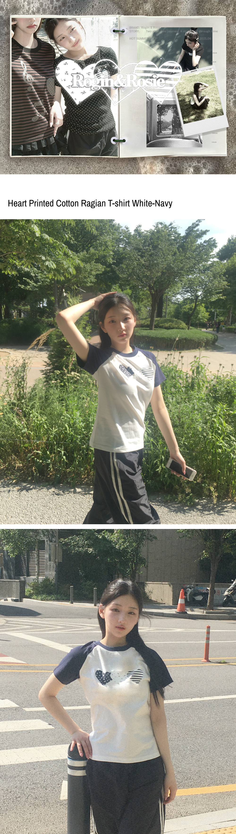 Rogin N Rosie Heart Printed Cotton Ragian T-shirt White-Navy