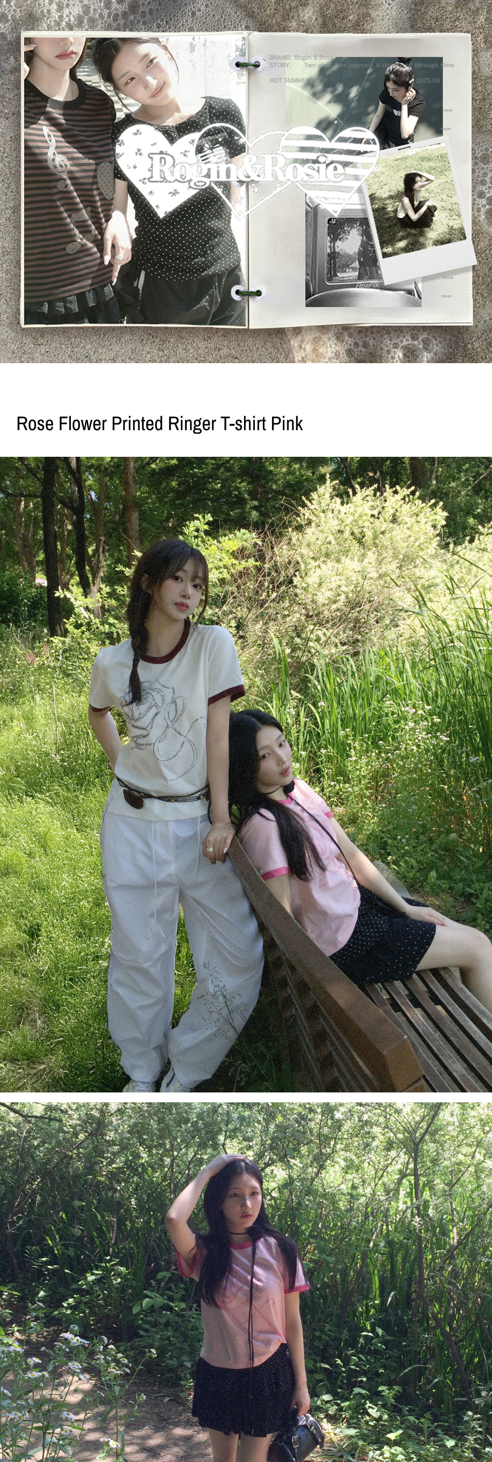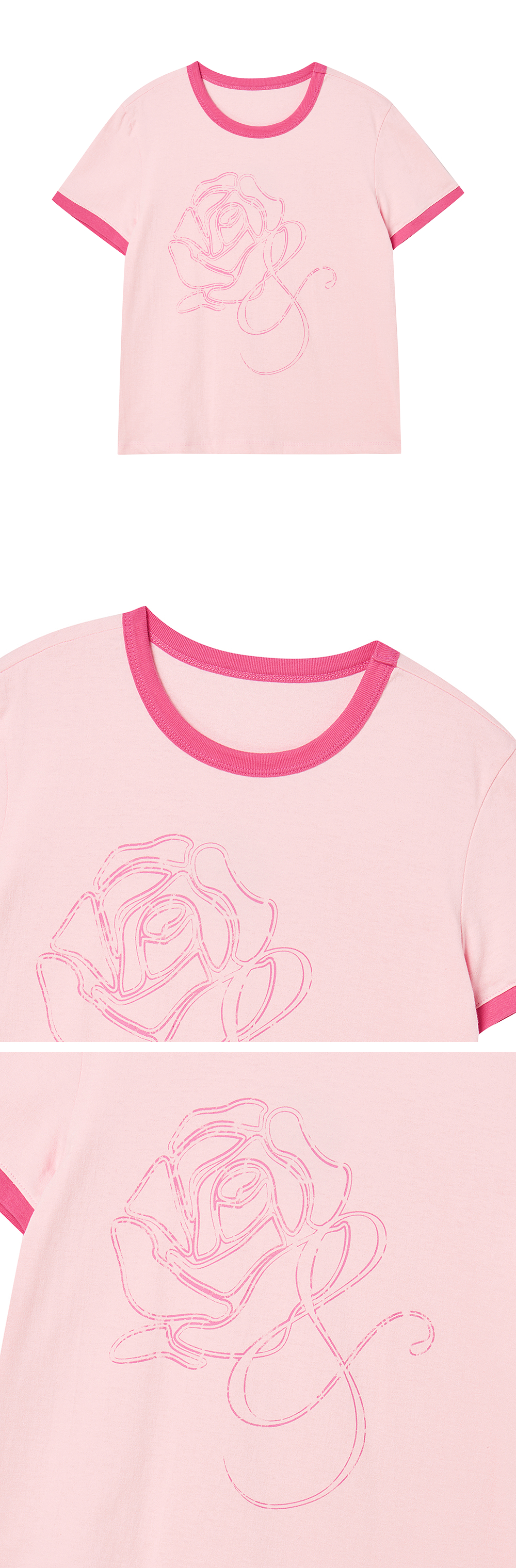 로긴 앤 로지 로즈플라워 프린티드 링거티셔츠 핑크
