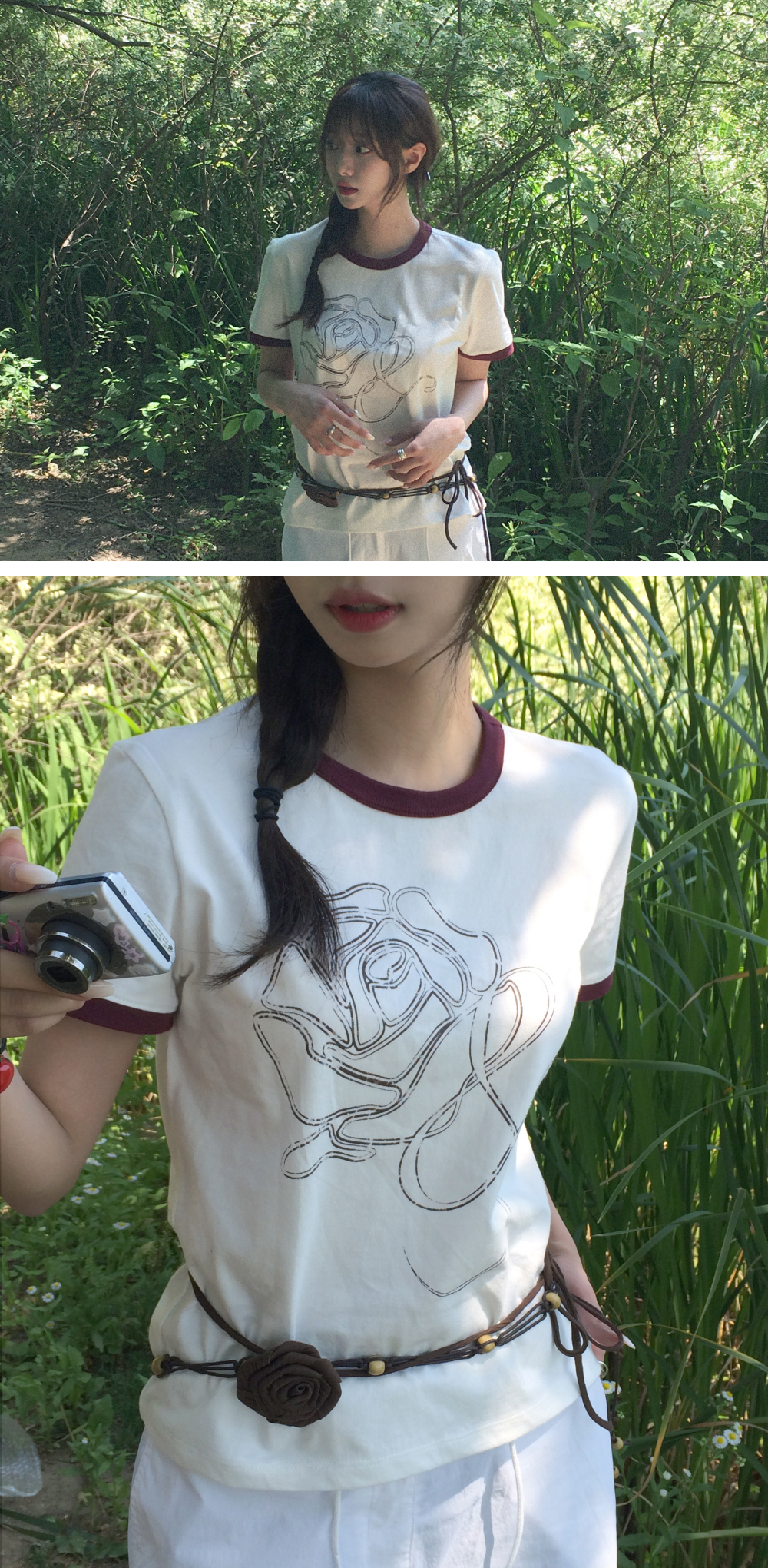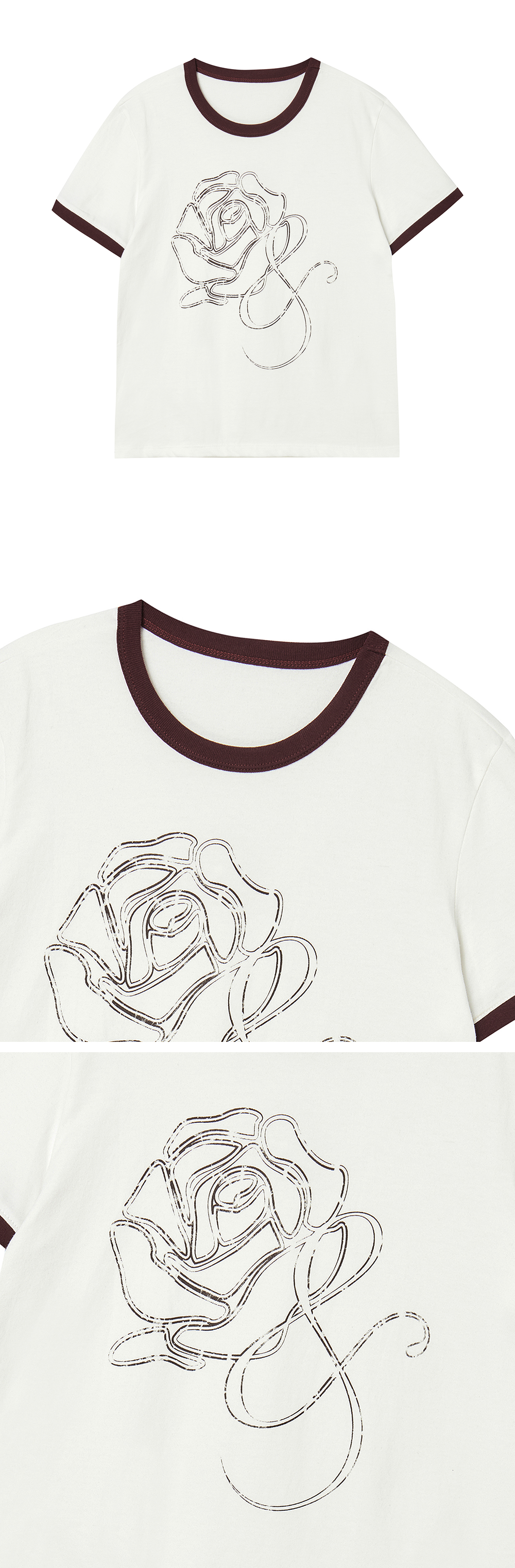 Rogin N Rosie Rose Flower Printed Ringer T-shirt White