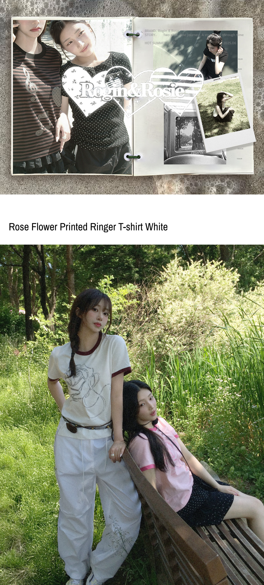 로긴 앤 로지 로즈플라워 프린티드 링거티셔츠 화이트