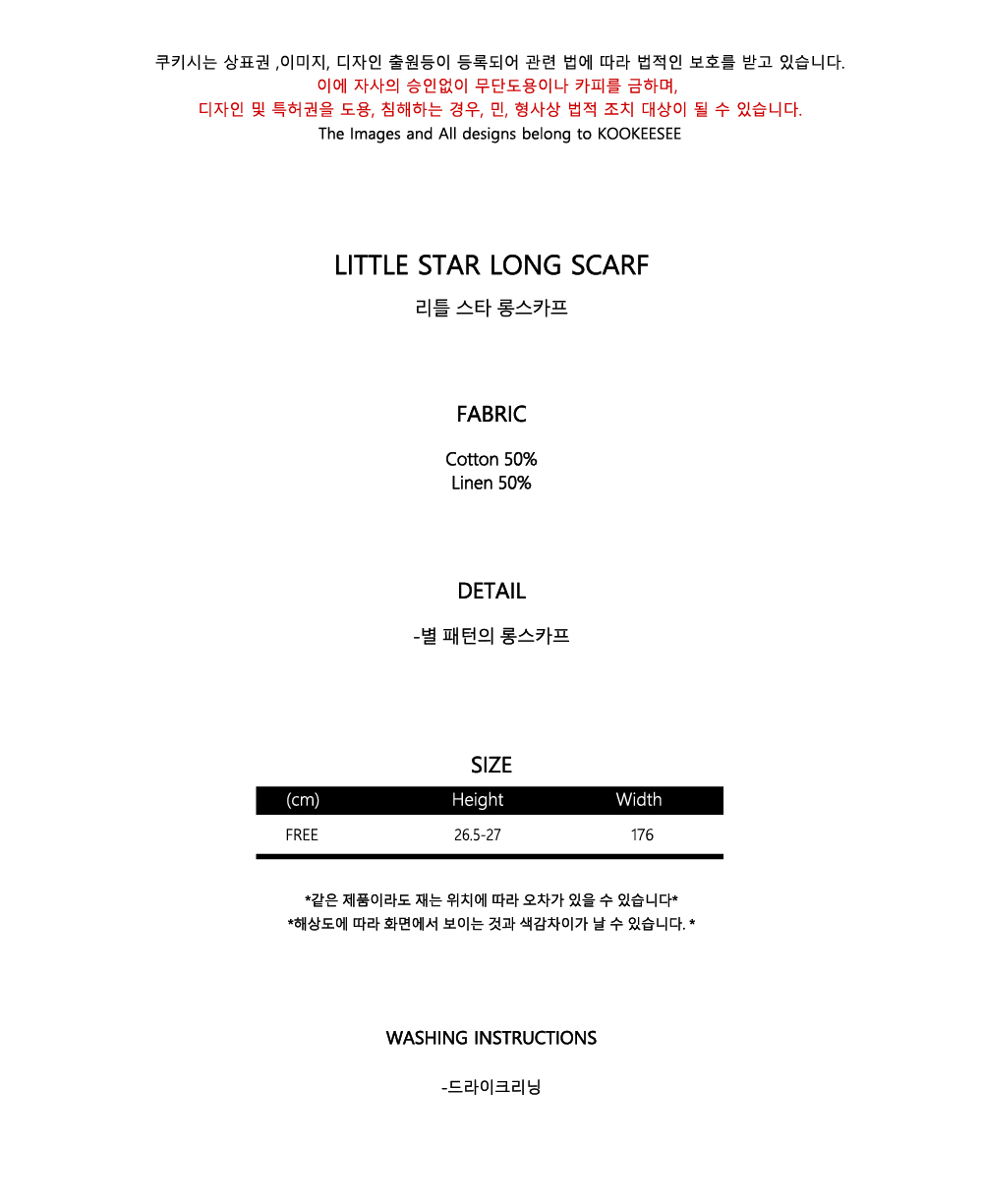 쿠키시 리틀 스타 롱스카프 - 그레이