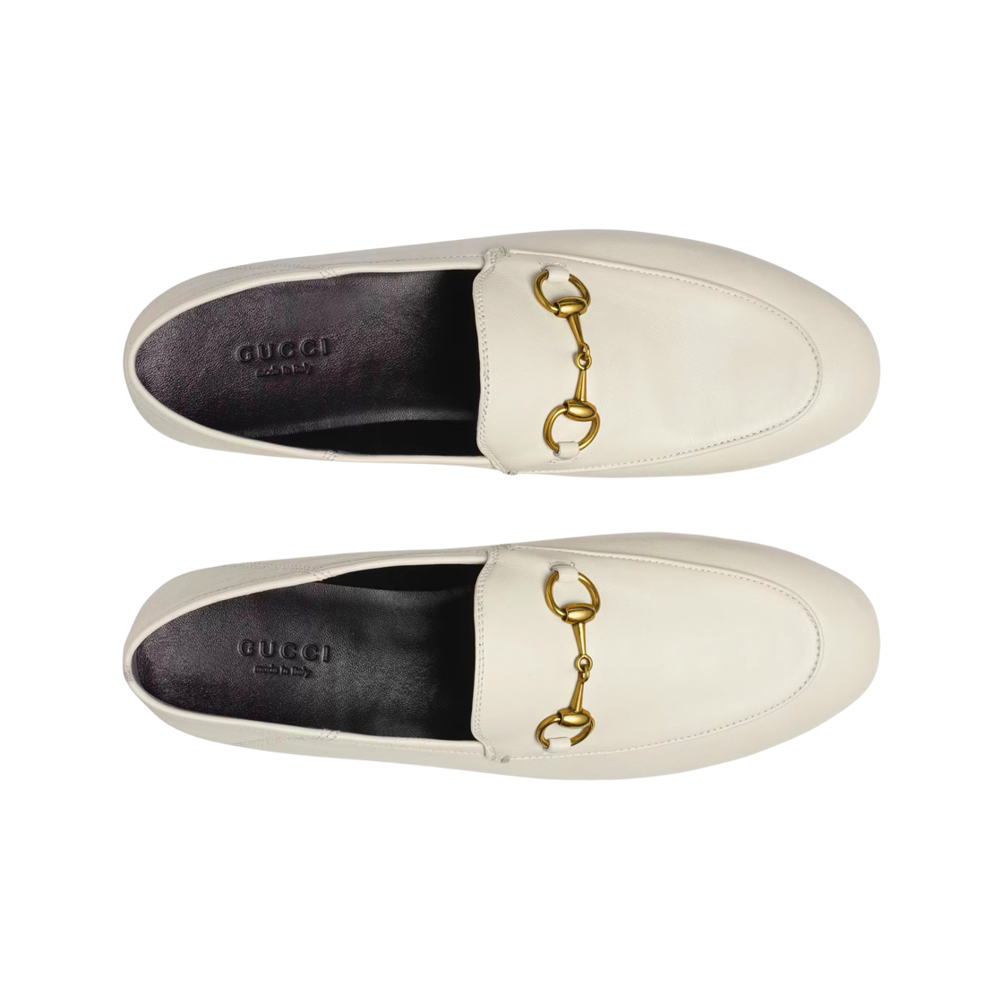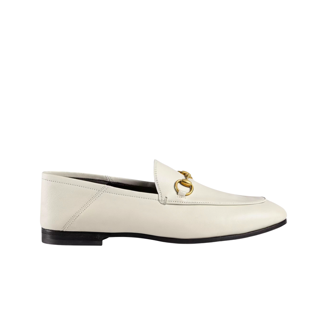 (W) Gucci Heel Folded Horsebit Leather Loafers White