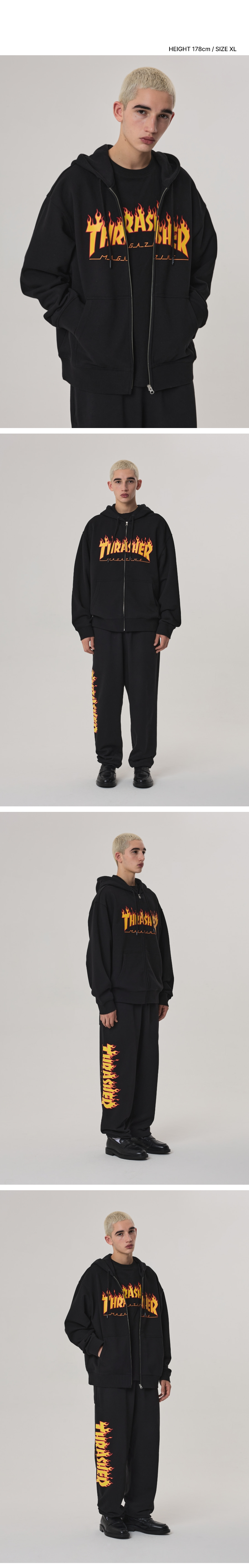 THRASHER Big Flame Logo Hood Zip-Up Black