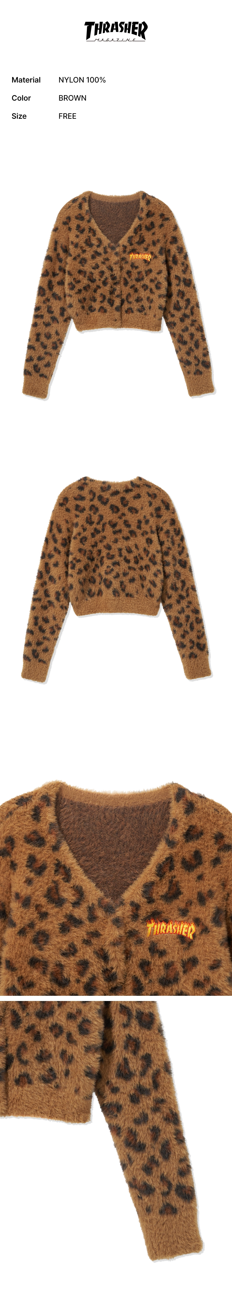THRASHER Women Leopard Crop Cardigan Brown
