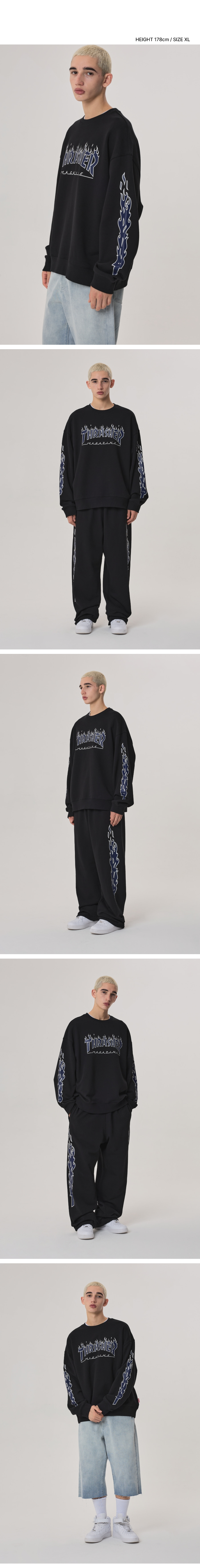 트레셔 플레임 슬리브 맨투맨 블랙