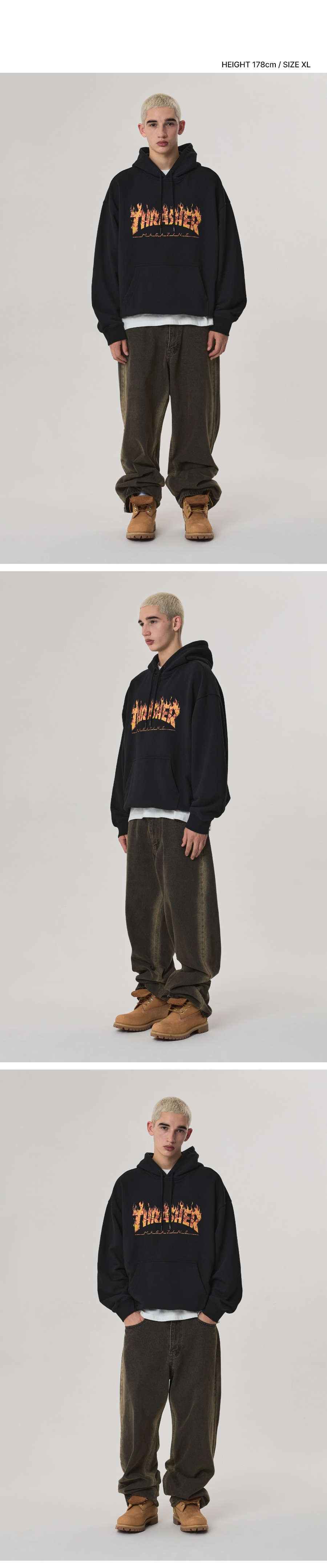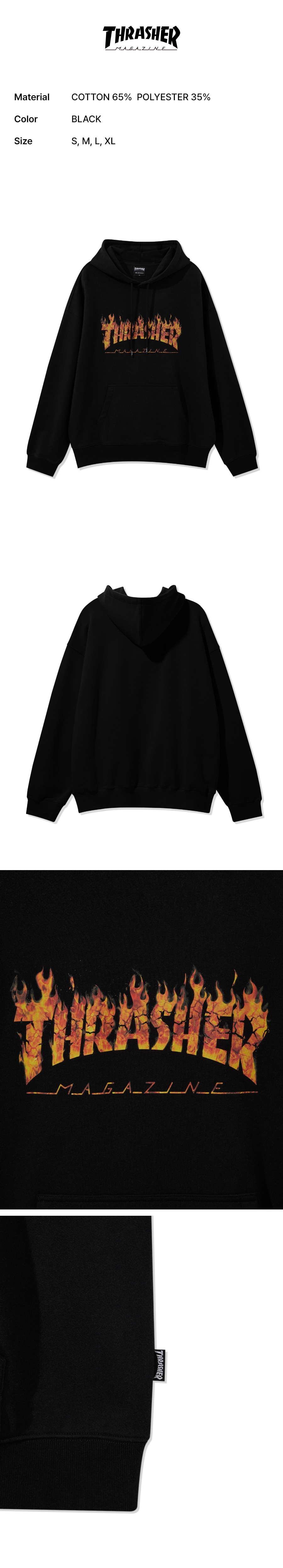 트레셔 리얼 플레임 로고 후디 블랙