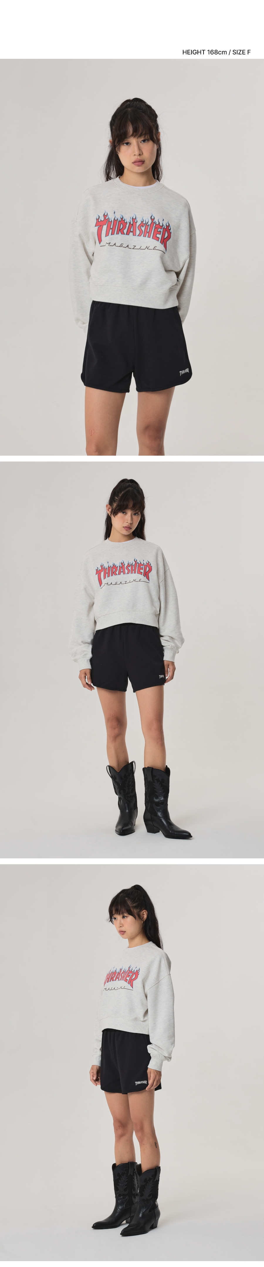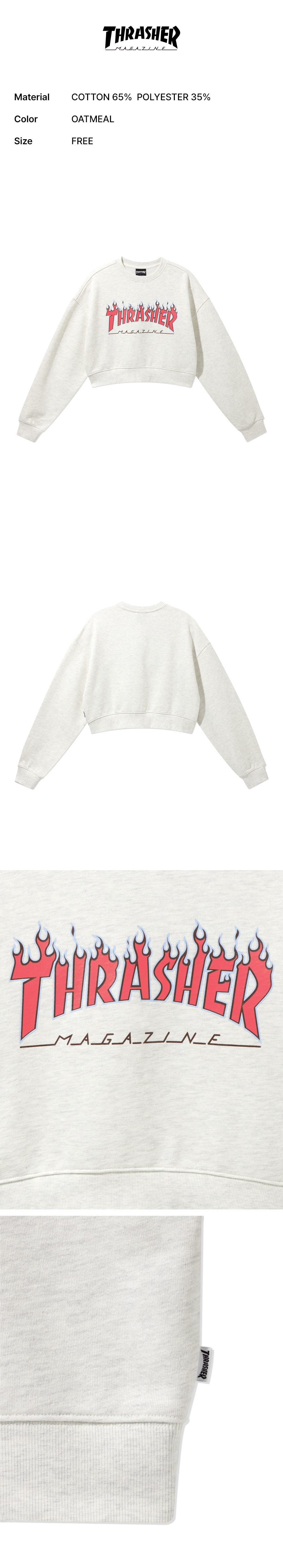 트레셔 플레임 크롭 맨투맨 오트밀