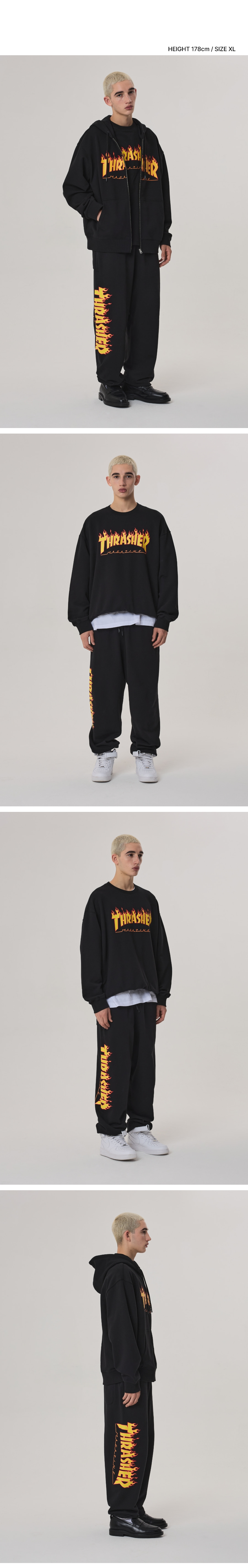 트레셔 플레임 로고 스웻 조거 팬츠 블랙