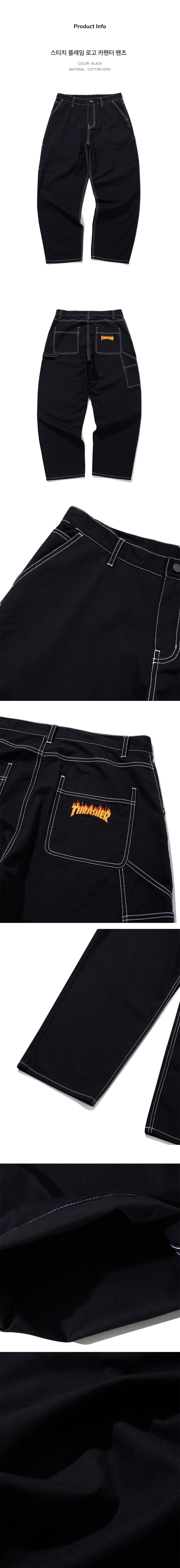 트레셔 스티치 플레임 로고 카펜터 팬츠 블랙
