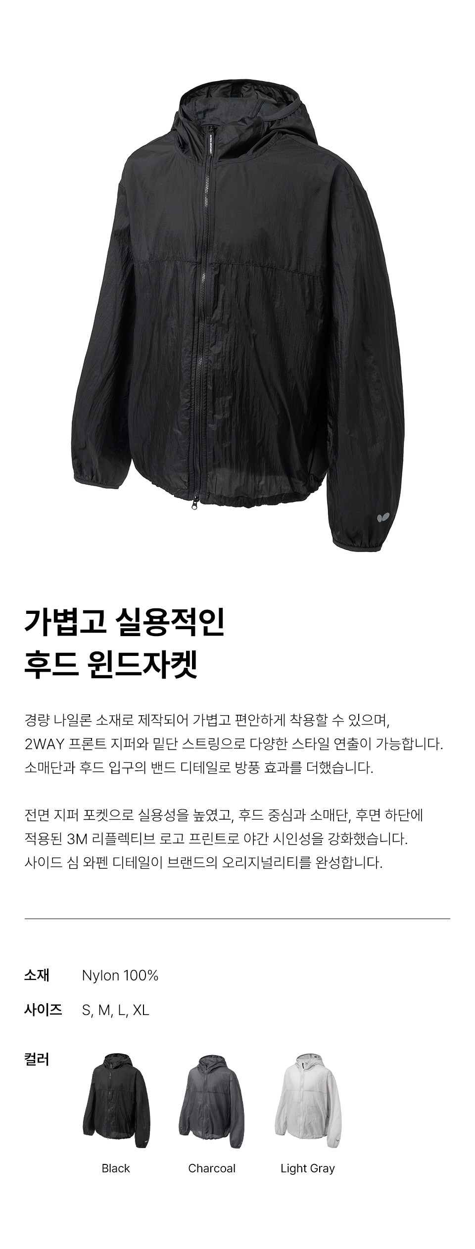 버터플라이 스트링 후드 바람막이 블랙