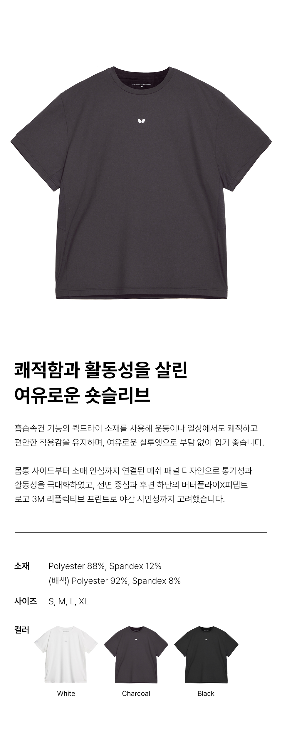 버터플라이 퀵 드라이 오버핏 반팔티셔츠 차콜