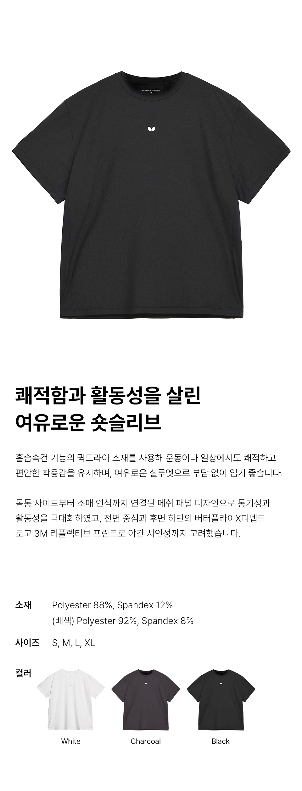 버터플라이 퀵 드라이 오버핏 반팔티셔츠 블랙