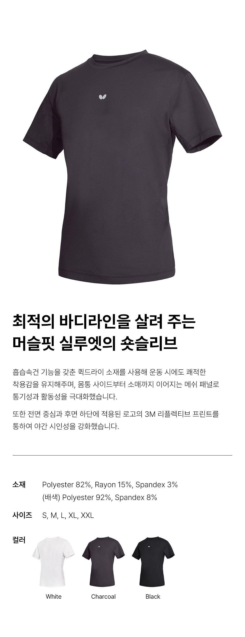 버터플라이 퀵 드라이 머슬핏 반팔티셔츠 차콜
