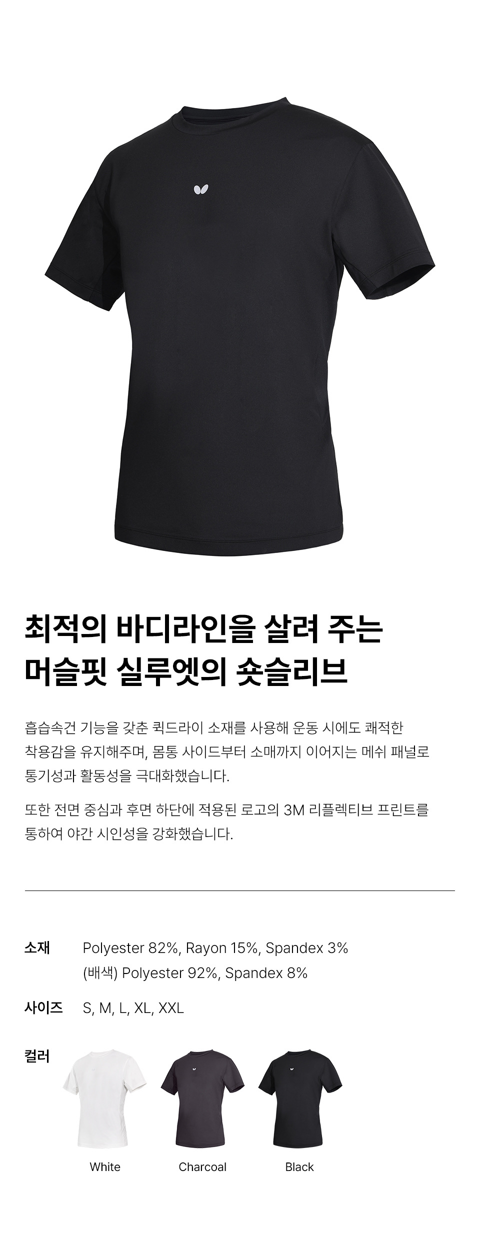 버터플라이 퀵 드라이 머슬핏 반팔티셔츠 블랙