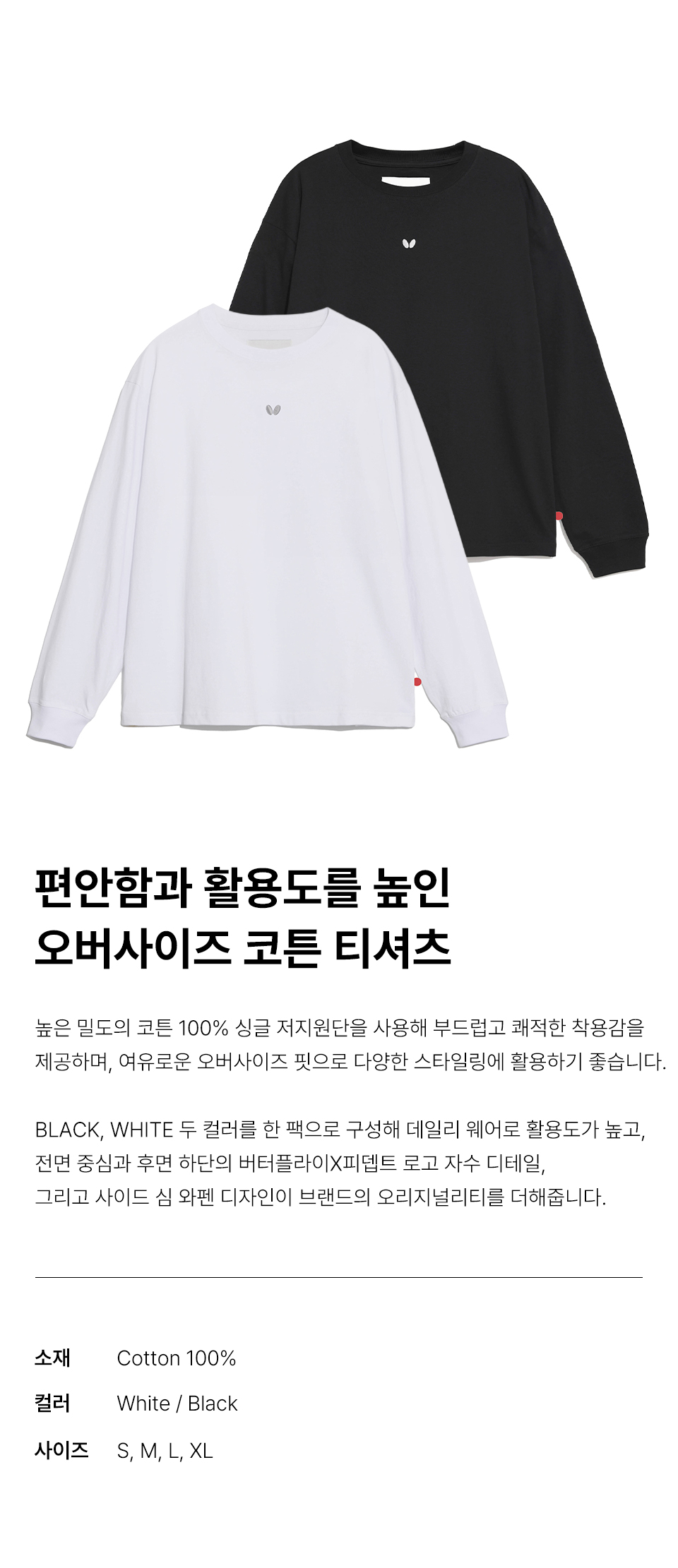 버터플라이 로고 롱 슬리브 화이트/블랙 2pack