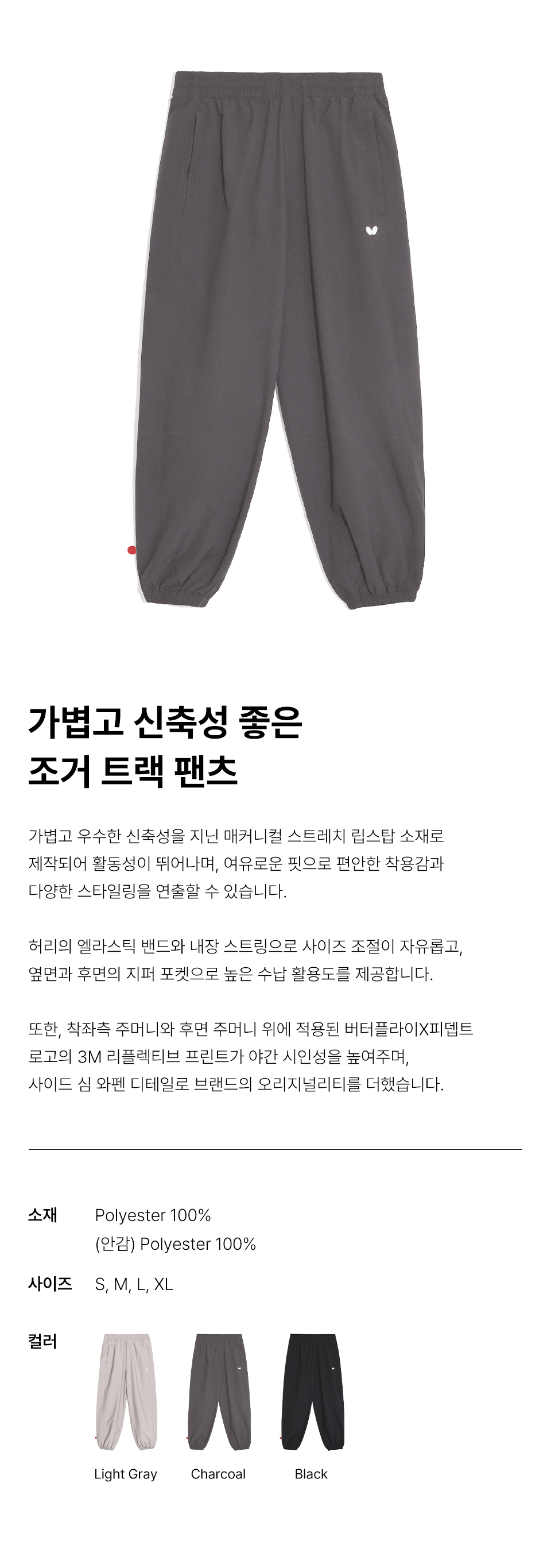 버터플라이 액티브 트랙 팬츠 차콜