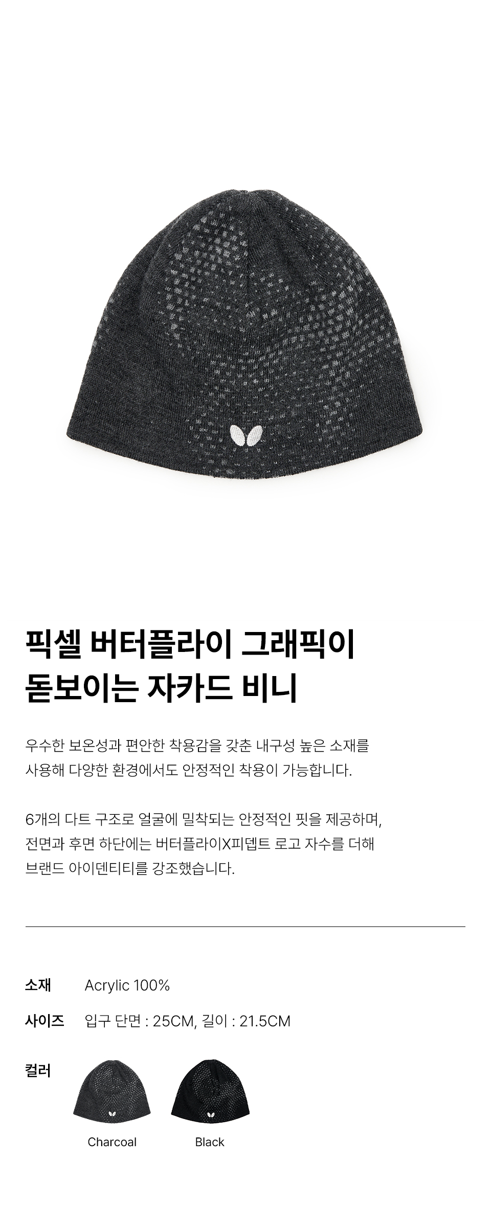 버터플라이 아크릴 패턴 비니 차콜