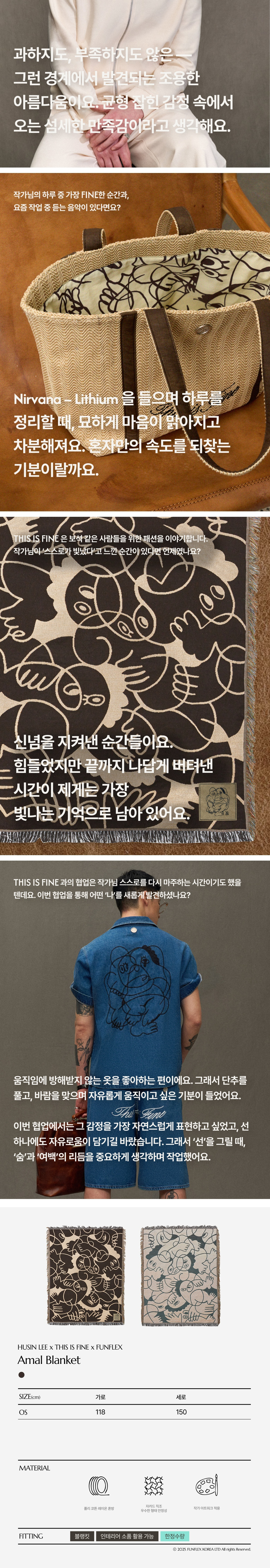 Artist Collaboration with HUSIN LEE (@nexxtgod) ✓ 이후신 작가의 자유로운 리듬을 담은 시그니처 일러스트 ✓ 부드럽고 고급스러운 자카드(Jacquard) 직조 방식 ✓ 소파 위에도, 여행지에서도 활용도 높은 사이즈