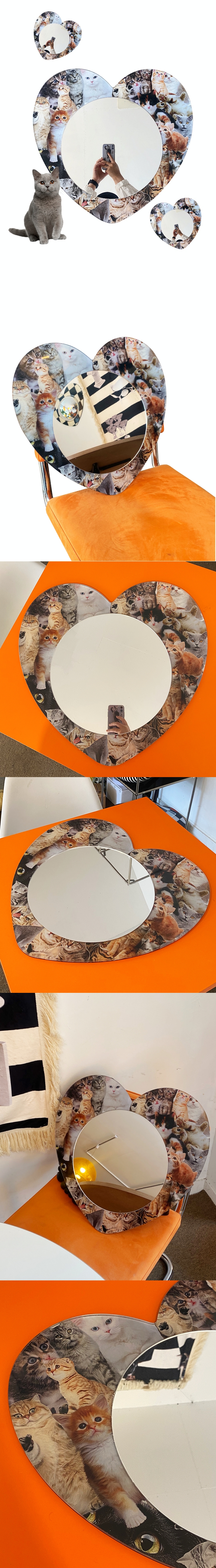 하트모양의 아크릴위에 아크릴 거울부착해 만든 평면형 거울입니다. 한 공간안에서 포인트를 주기 좋은 하트모양의 거울입니다. 소재특성상 가벼워 3m으로 벽에 부착하여 사용이 가능하며, 벽이나 선반위에 세워서 사용도 가능합니다. 아크릴 거울 특성상 왜곡이 존재하며, 구매전 참고 부탁드립니다. *w 48cm / h 46cm / d 0.8cm
