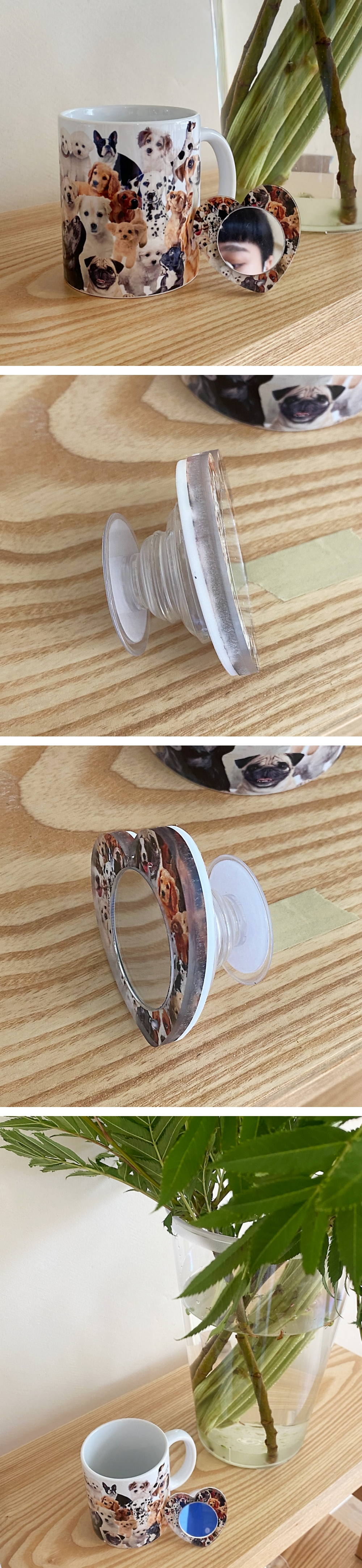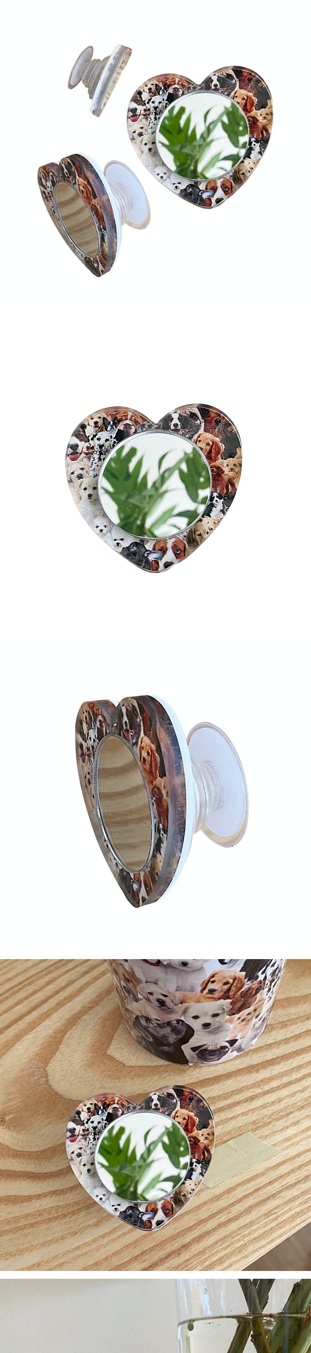 강아지들의 귀여움을 한가득 모아 만든 유라이크왓의 러브퍼피 그립톡입니다. 하트미러의 미니사이즈로 제작된 그립톡 입니다. 0.5cm 두께에 거울을 내부에 부착해 실용적이면서도 귀엽게 포인트를 줄 수 있는 그립톡입니다. 다른 아크릴 그립톡보다 두꺼운 두께감이지만, 아크릴 특성상 무겁지 않으며 실생활에서 유용하게 사용하기 좋은 제품입니다.