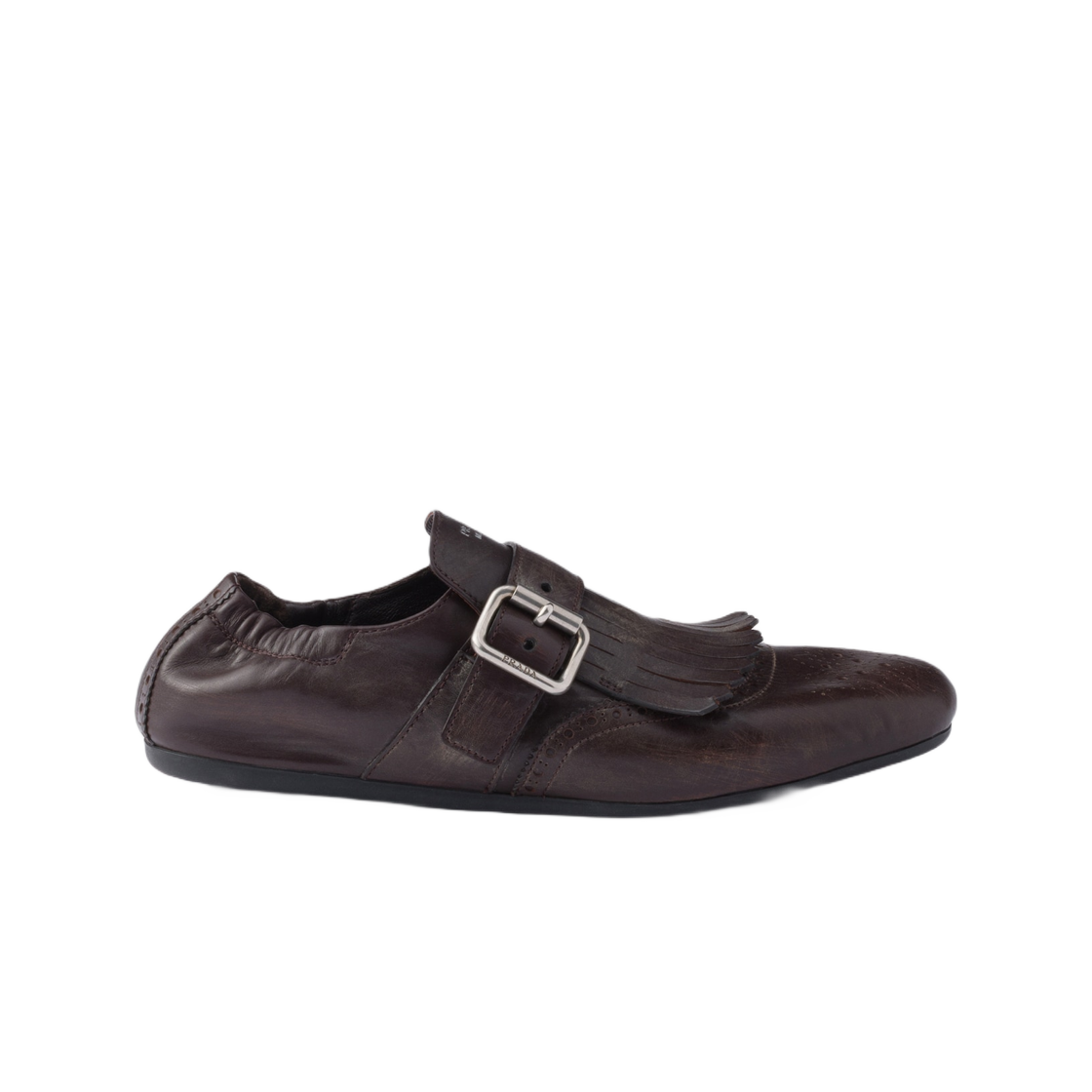 (W) 프라다 셔플 레더 슈즈 버클 다크 브라운