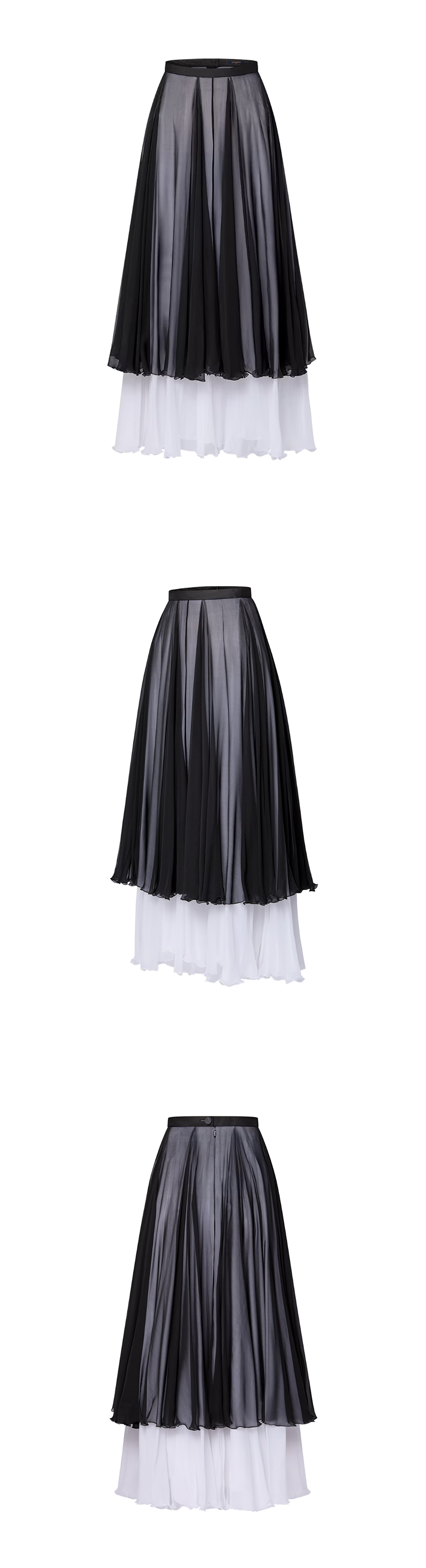 루이비통 바이컬러 플루이드 실크 티어드 스커트 36 블랙/화이트