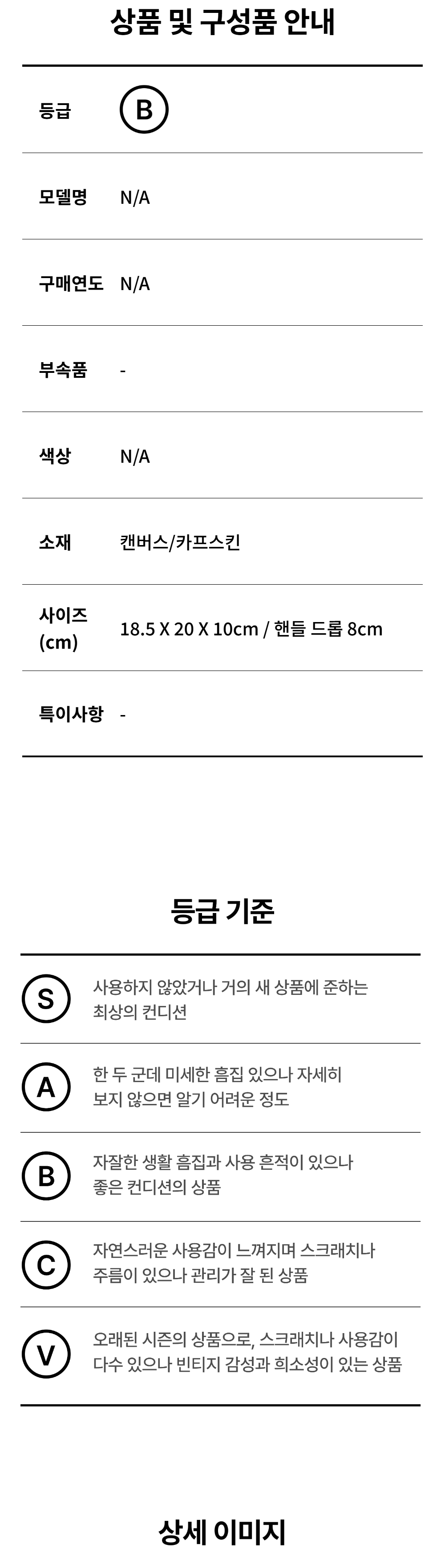 모든 상품(가죽, 의류, 잡화, 슈즈 등)은 사용자의 사용방법과 환경에 따라 변형, 변색이 될 수 있으니 반드시 취급 라벨에 표시된 관리 안내를 따르시길 권장 드립니다. 이는 정도의 차이가 있으며 과도한 체열과 땀, 습기, 빛, 마찰은 제품의 손상 및 변형을 일으킬 수 있으므로 주의하시길 바랍니다.