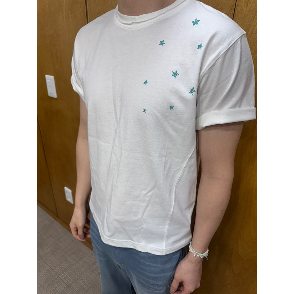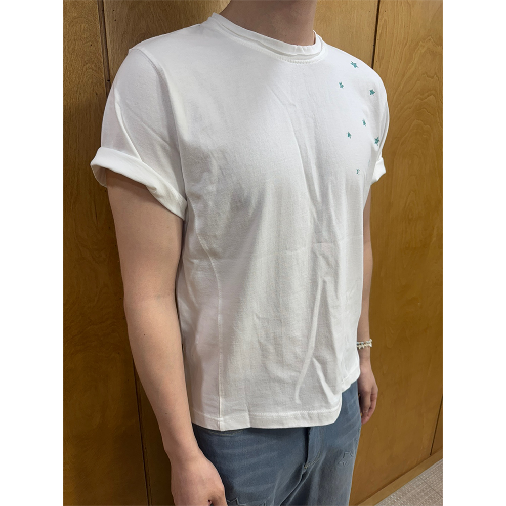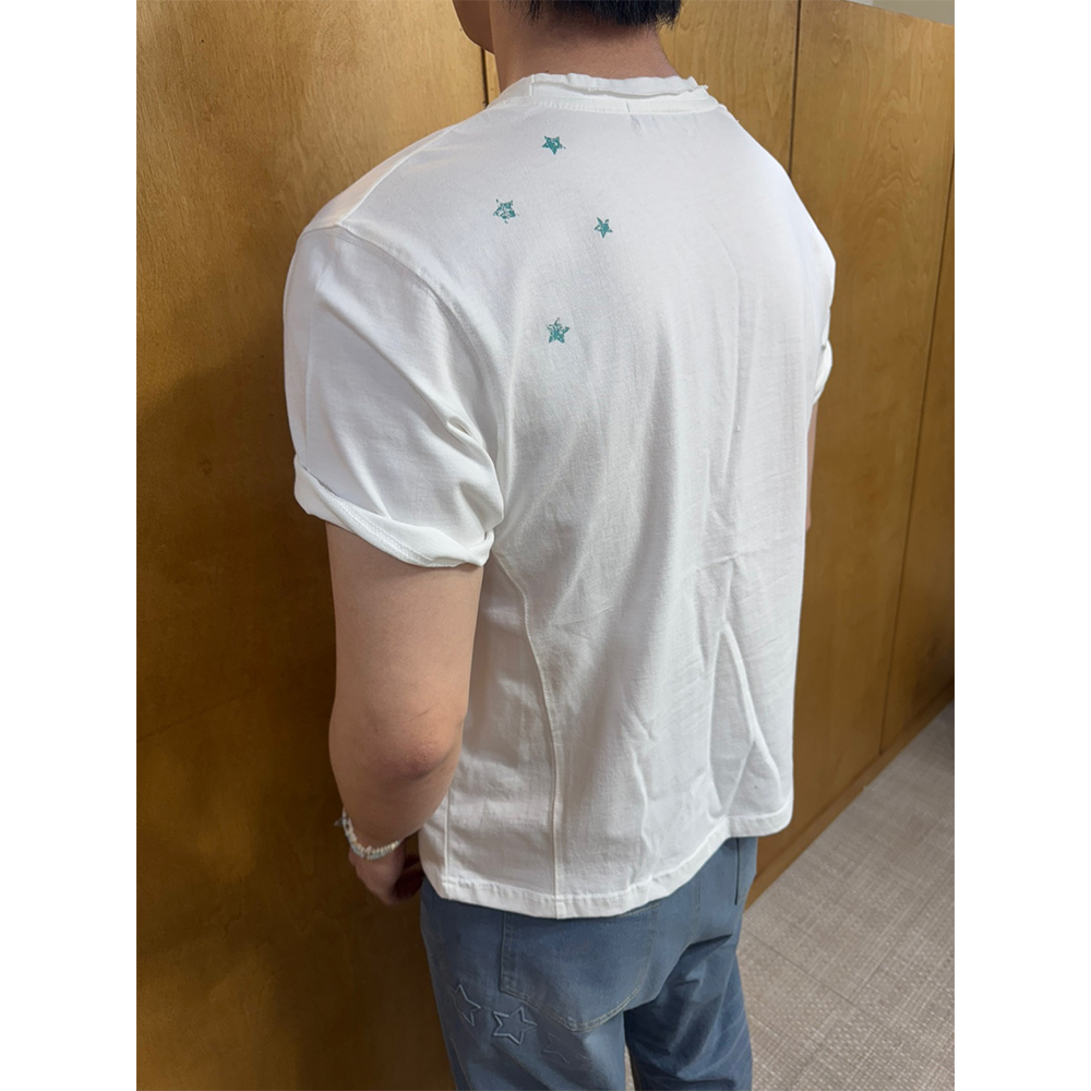 블루 선플라워 빈티지 90s 스타 크롭 반팔 티셔츠 화이트
