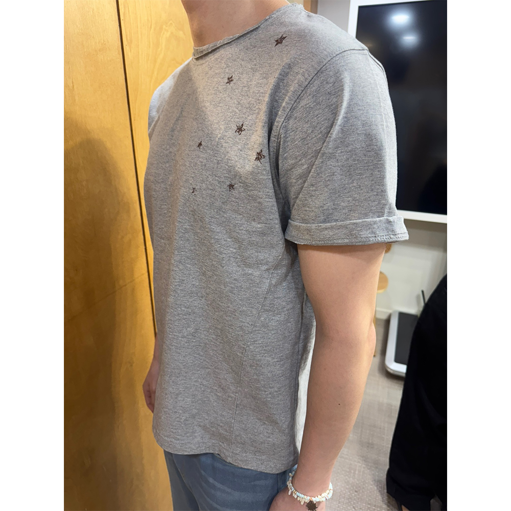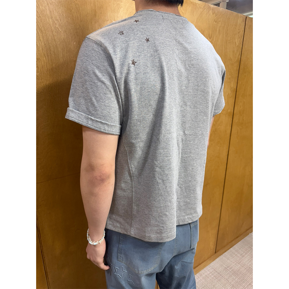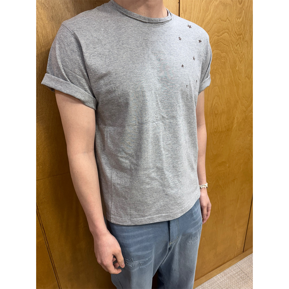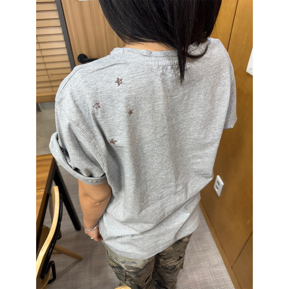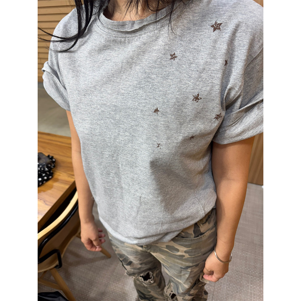 블루 선플라워 빈티지 90s 스타 크롭 반팔 티셔츠 멜란지 그레이