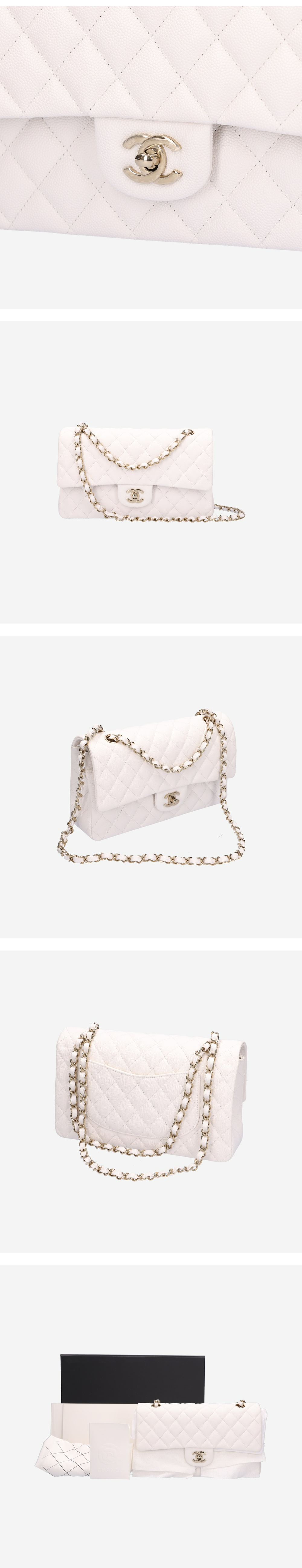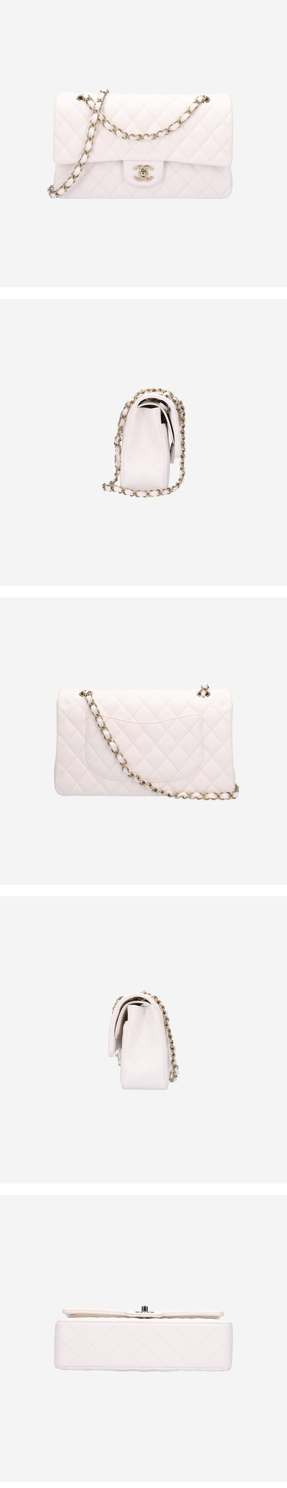 [S등급] 샤넬 A01112 클래식 미디움 플랩백 그레인드 카프스킨 화이트 금장